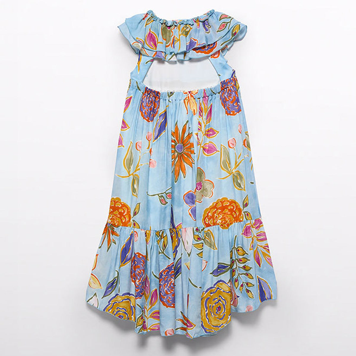 Abel & Lula - Asymmetric Floral Maxi Dress w/Back Cut-Out