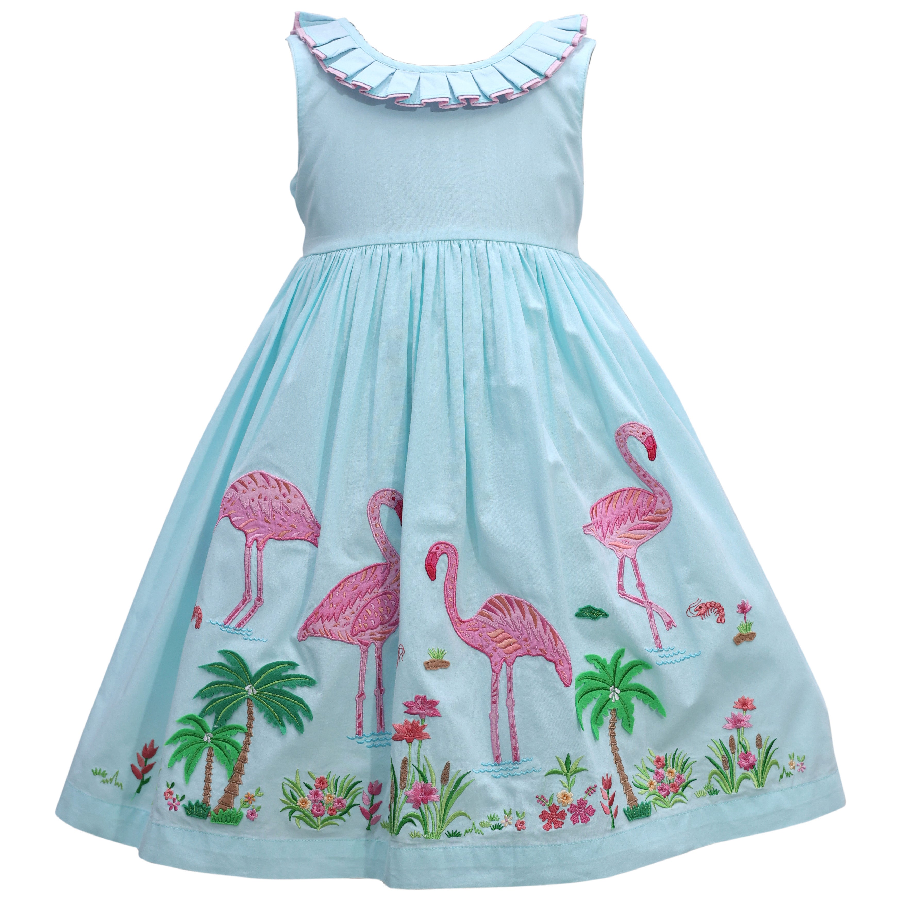 Cotton Kids - Flamingo Embroidered Dress **PRE-ORDER**