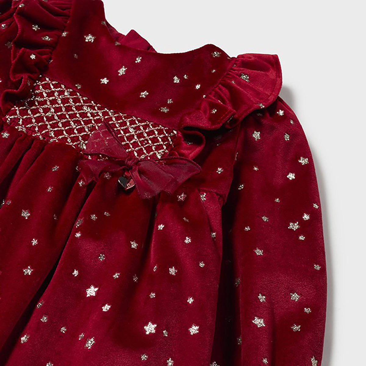 Mayoral - Velvet Smocked Dress w/Gold Star Accents - Dark Red
