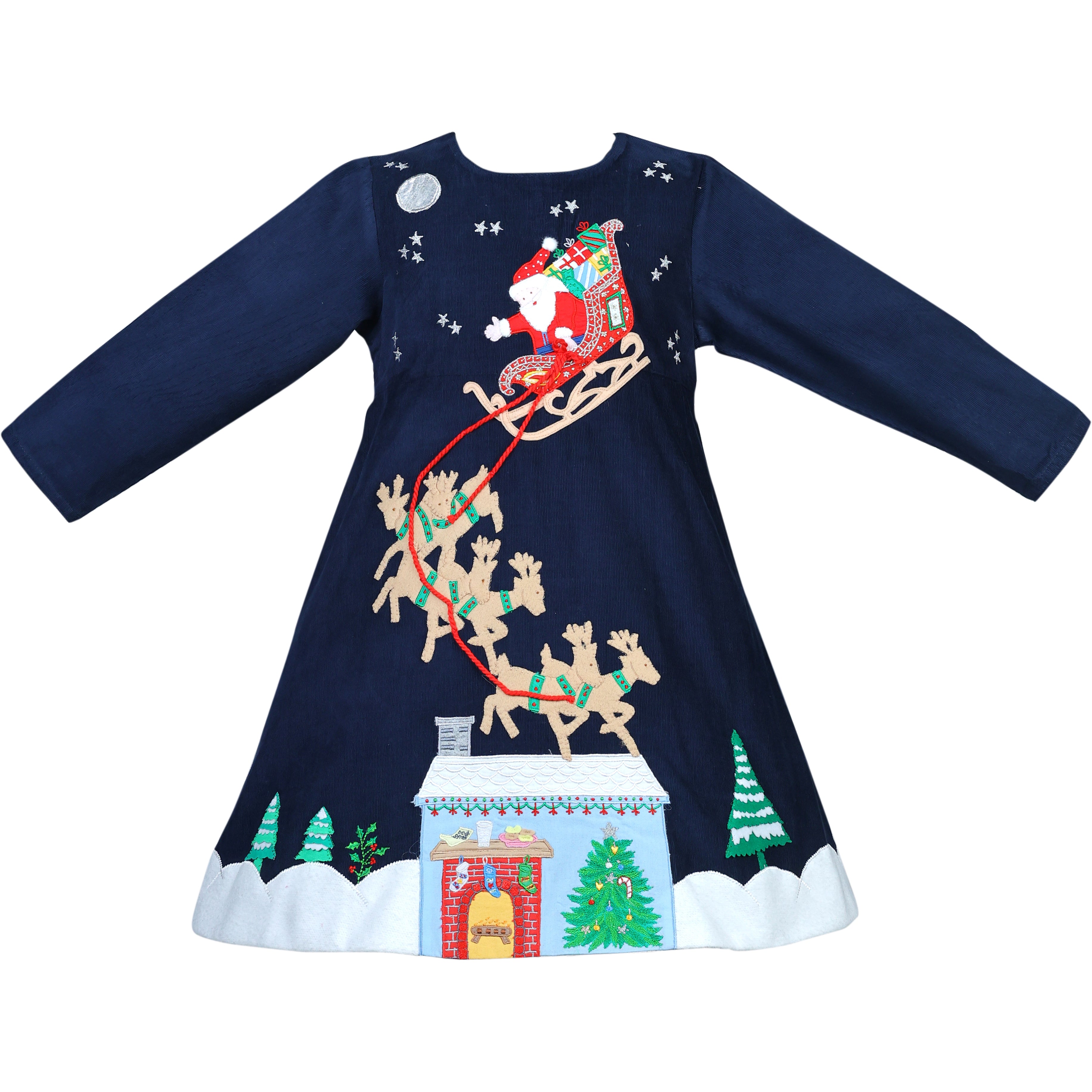 Cotton Kids - Holiday Santa's Sleigh Embroidered Dress