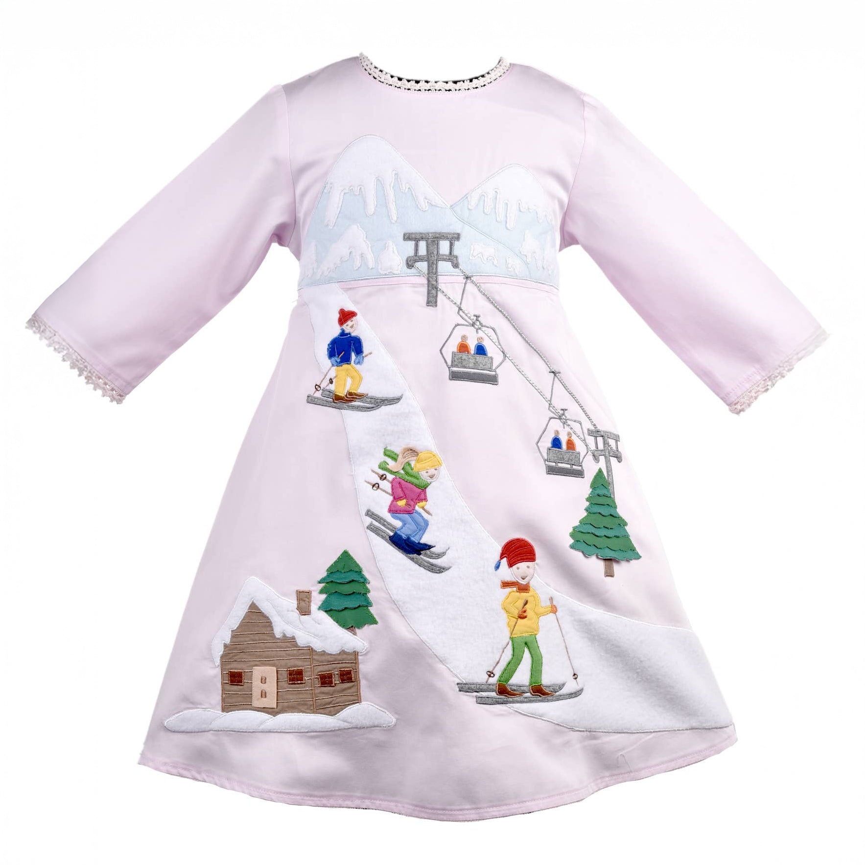 Cotton Kids - Holiday Snow Skiing Embroidered Dress