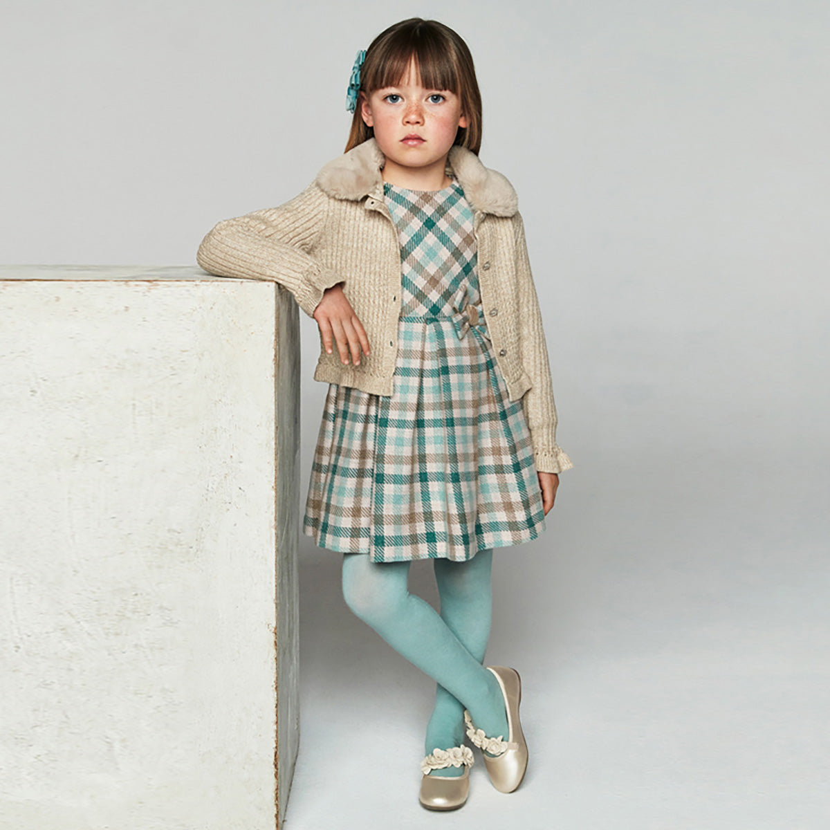 Mayoral - Checked Dress w/Bow Accent - Jade Mix