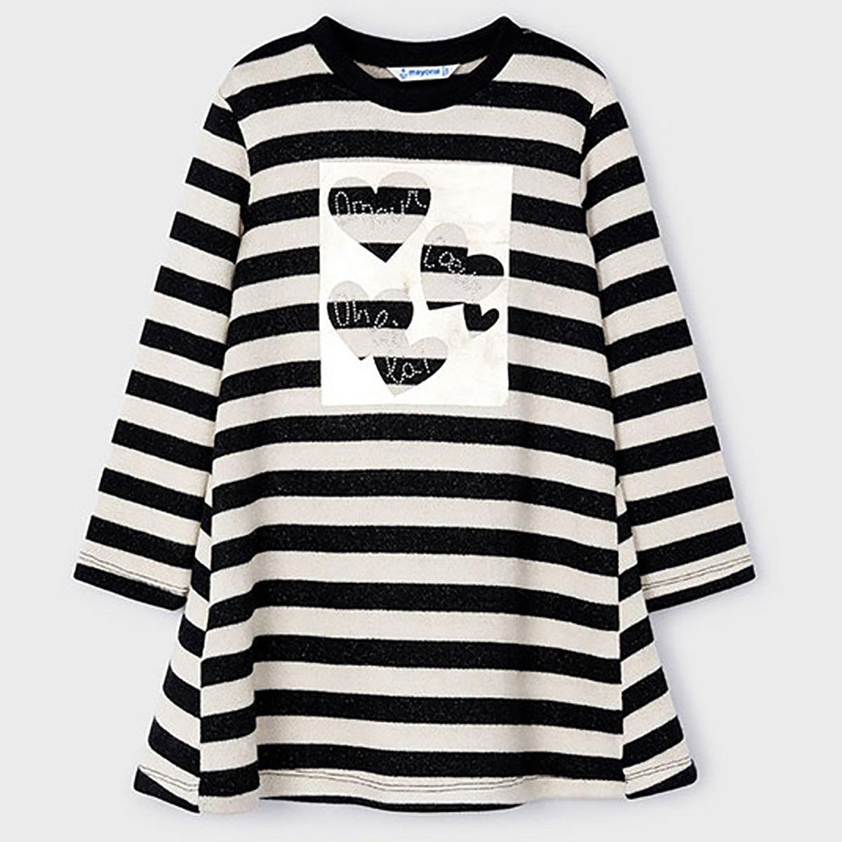 Mayoral - Hearts Galore Striped Knit Dress - Black / Ivory