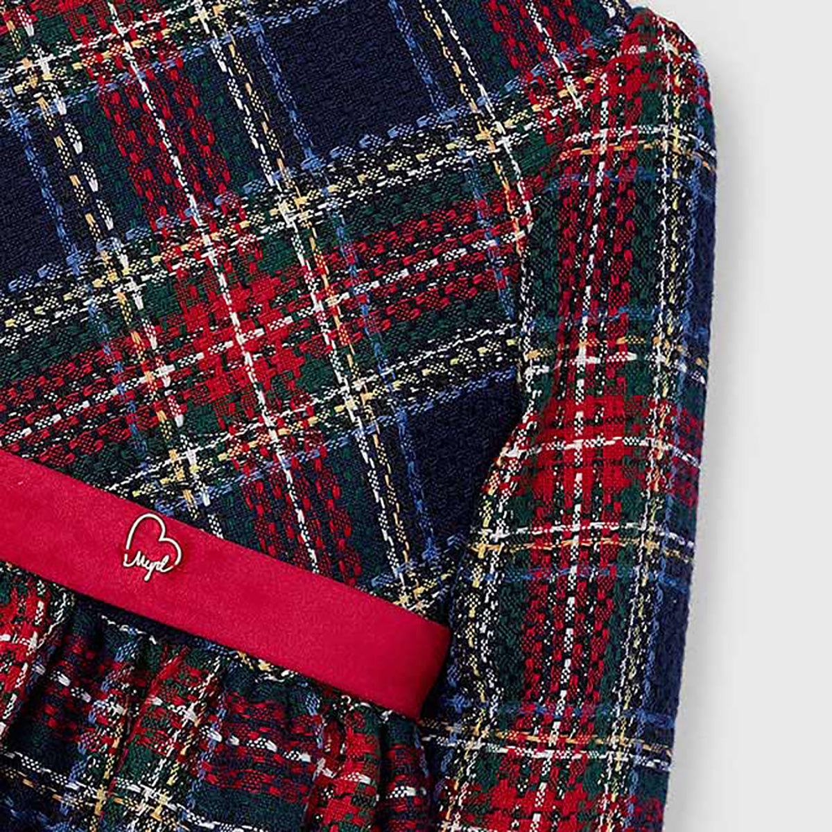 Mayoral - Preppy Plaid Dress w/Sash - Navy/Cherry