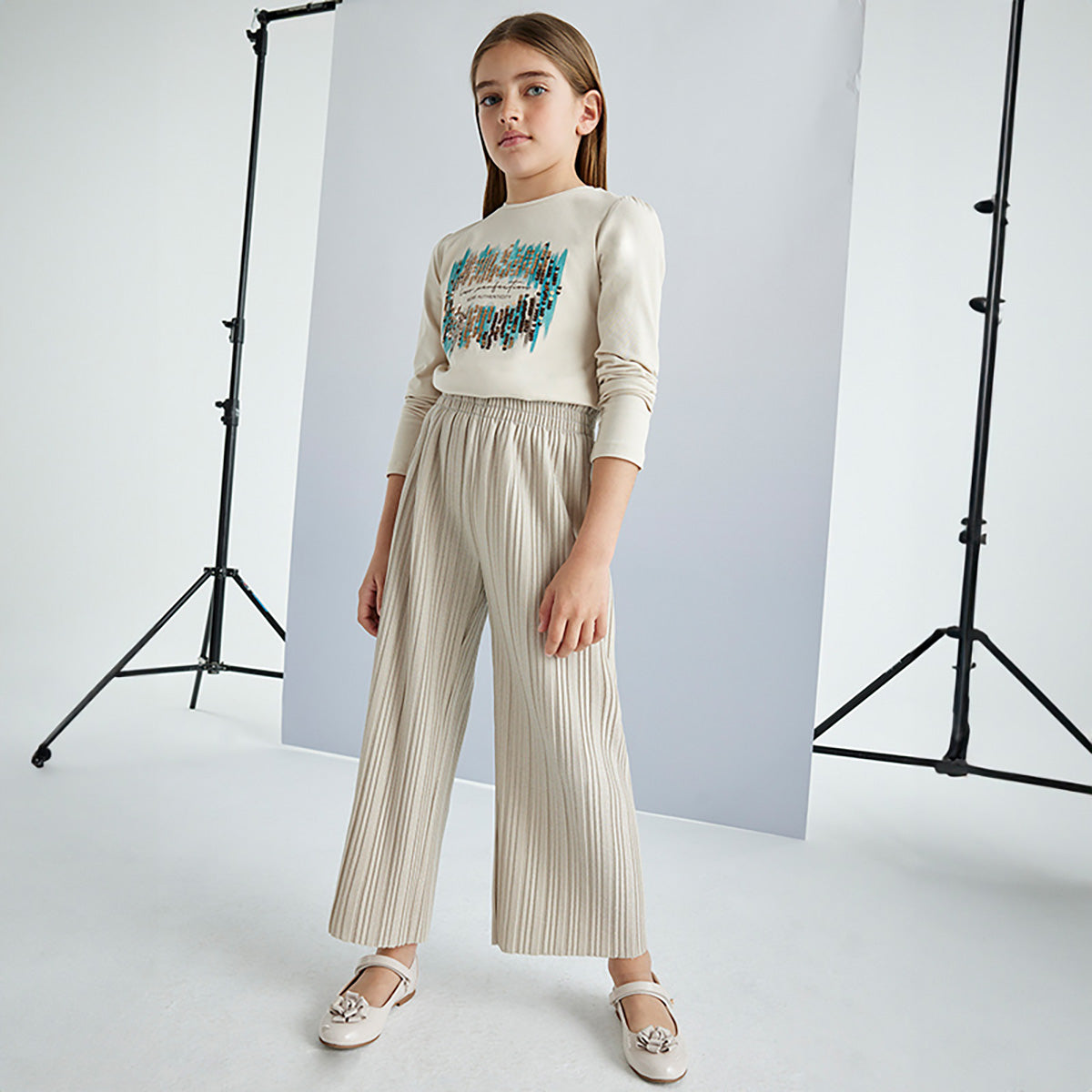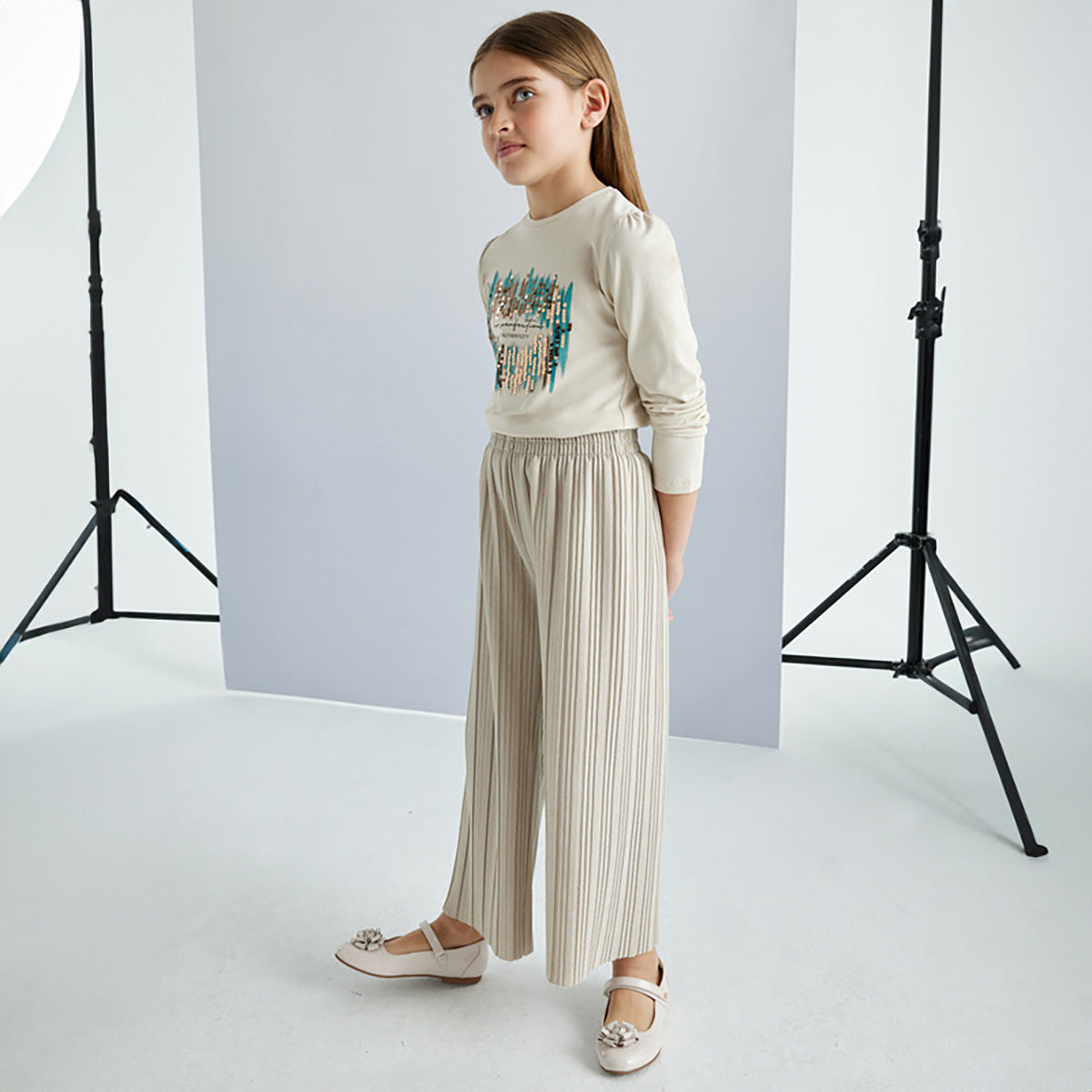Mayoral - Sparkle Pleated Pants - Taupe
