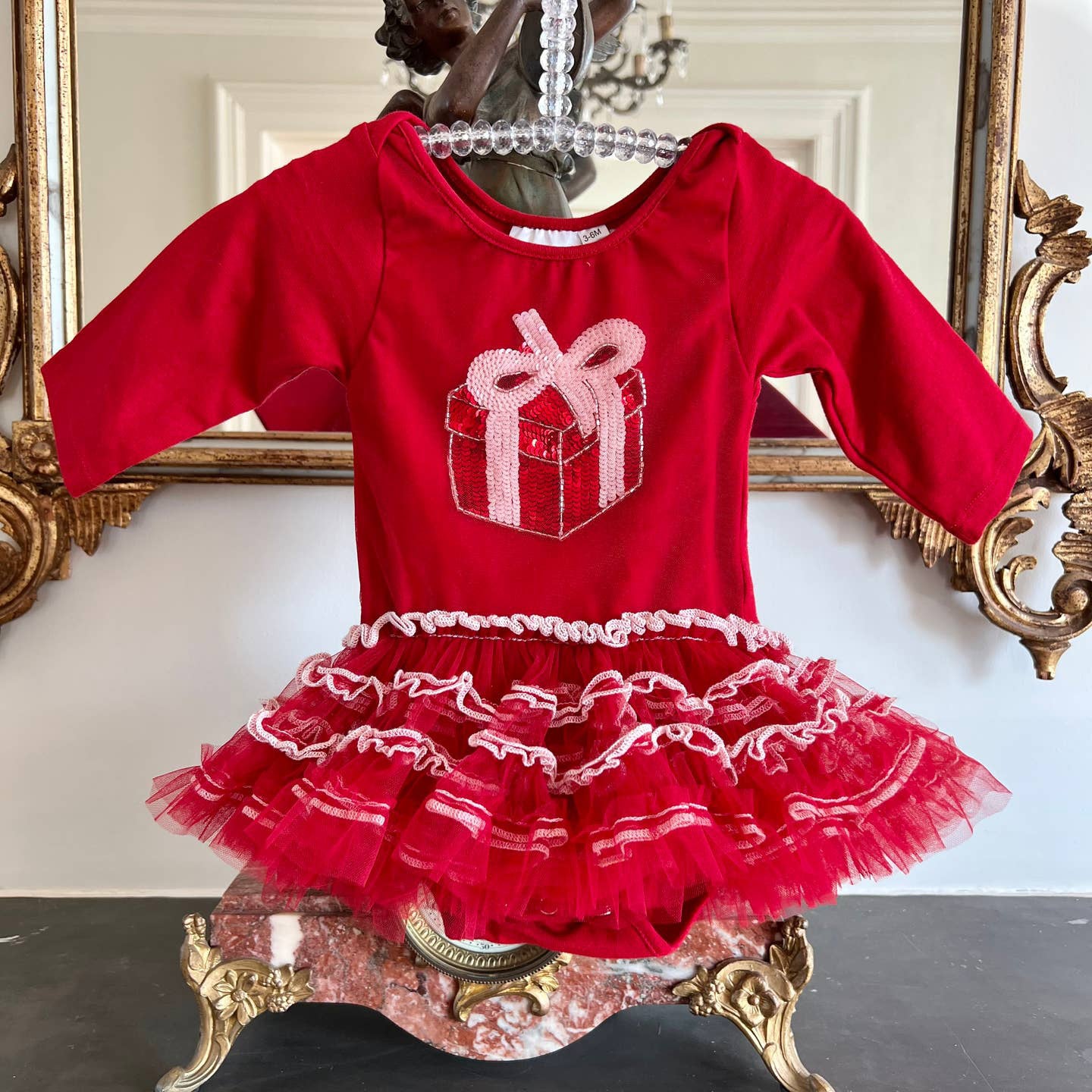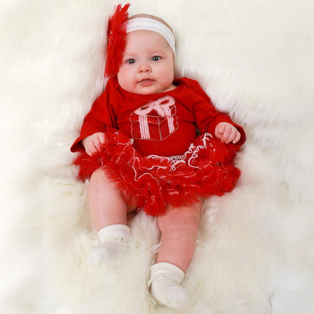 The Present Baby Onesie from Ooh! La, La! Couture is a charming addition to any little one's wardrobe. Crafted with the same love for fashion and comfort that inspired our brand, this onesie is perfect for active lifestyles. Its design is both fun and functional, blending well with our exclusive prints and Swarovski crystals. A stylish and comfortable experience for your little diva.