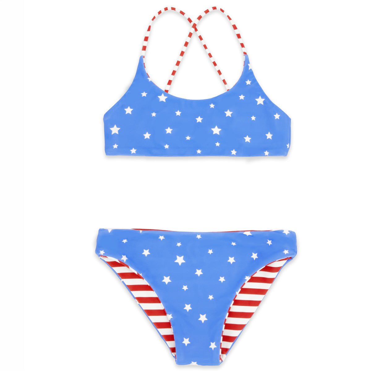 Feather 4 Arrow - Waverly 2pc Reversible Bikini Swimsuit - Red Stripe / Blue Stars **PRE-ORDER**