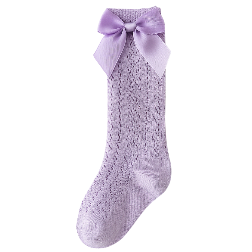Be Girl Clothing - Bow Whimsy Pointelle Knee Socks - Lavender **PRE-ORDER**