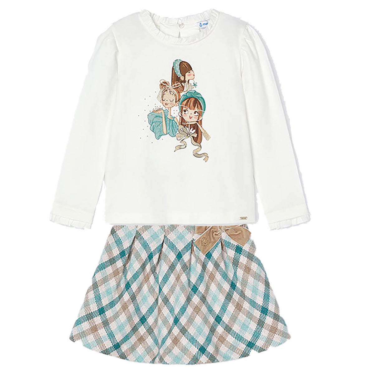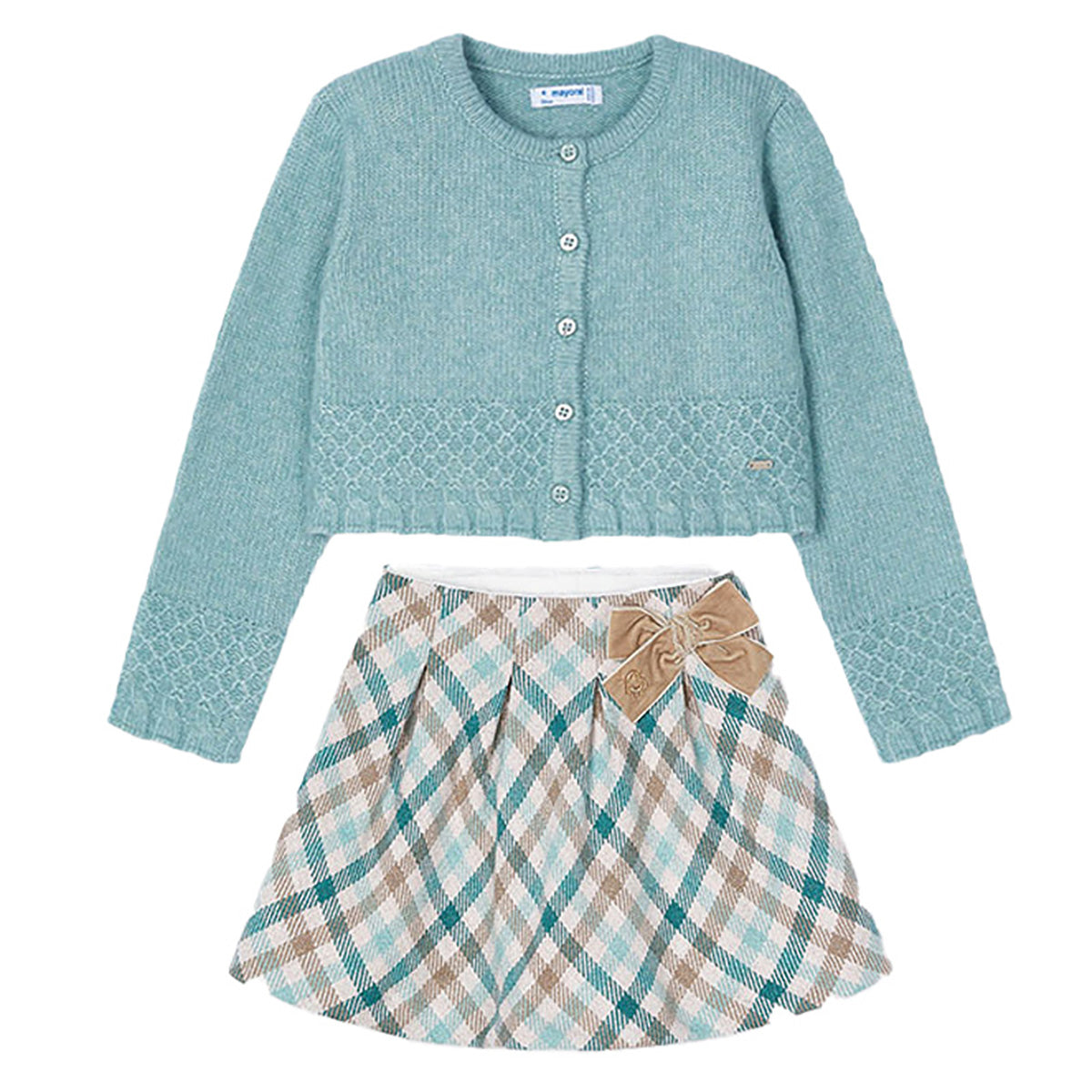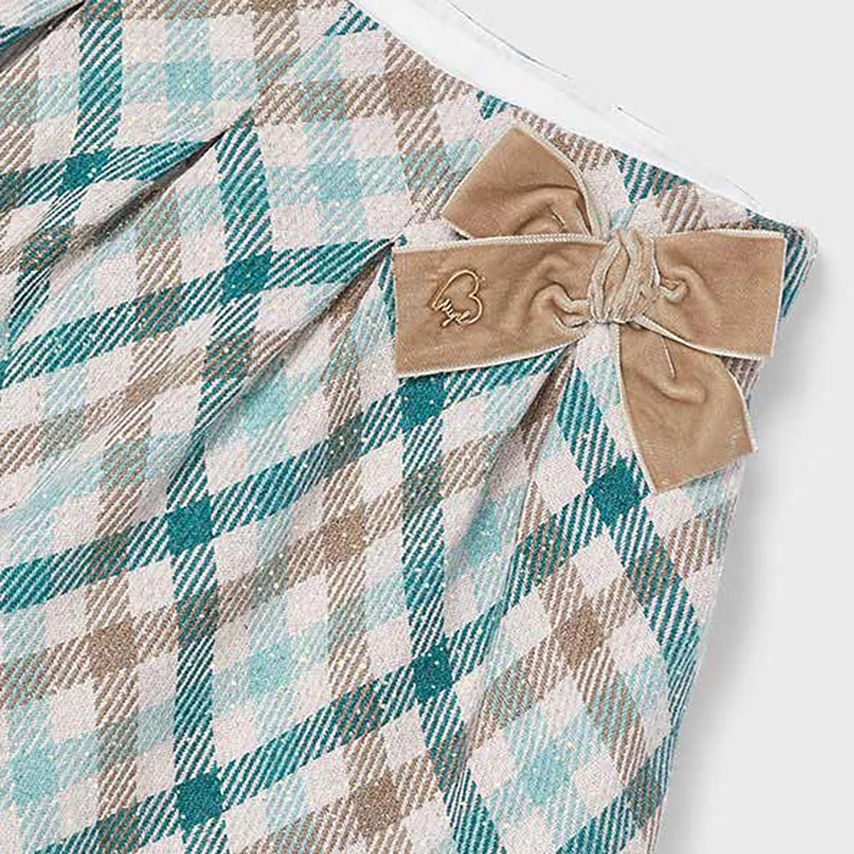 Mayoral - Checked Skirt w/Velvet Bow Accent - Jade Mix