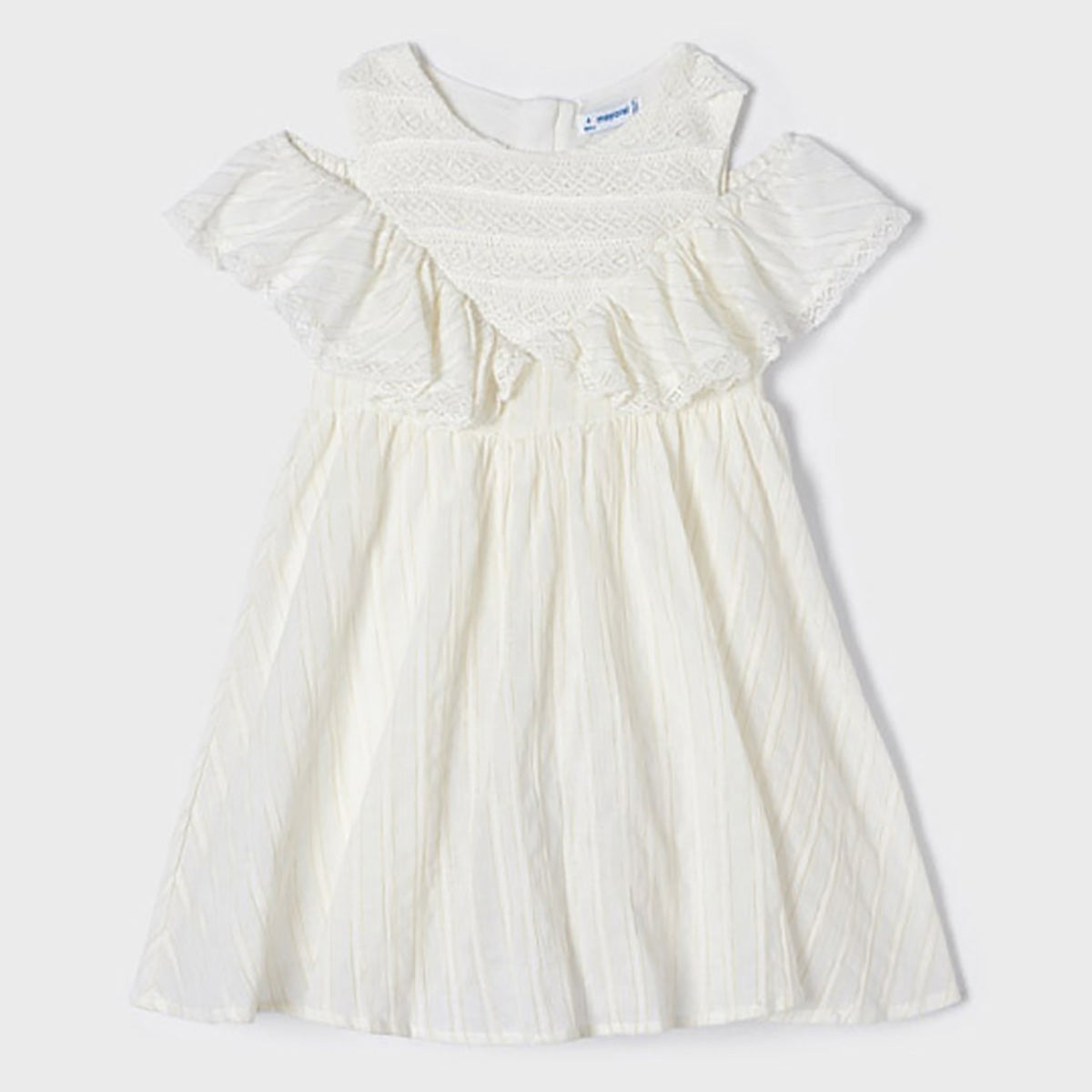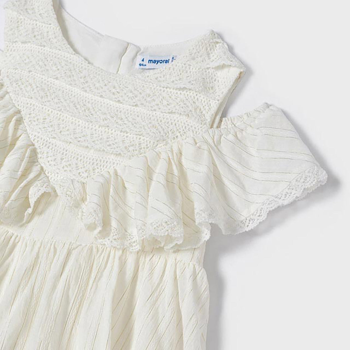 Mayoral - Cold Shoulder Ruffled Lace Dress - Natural - size 7