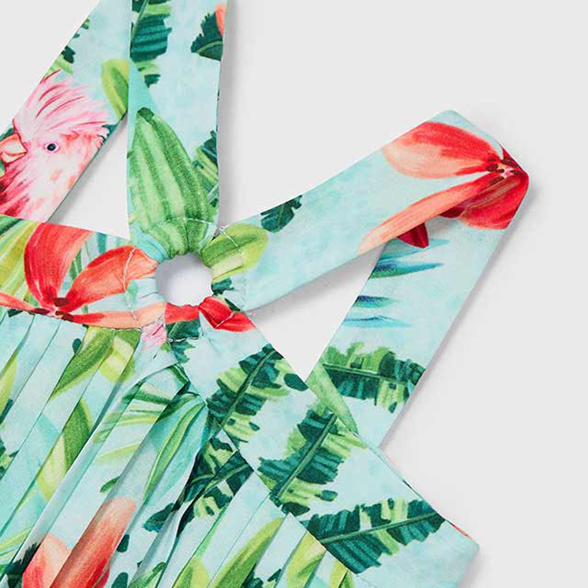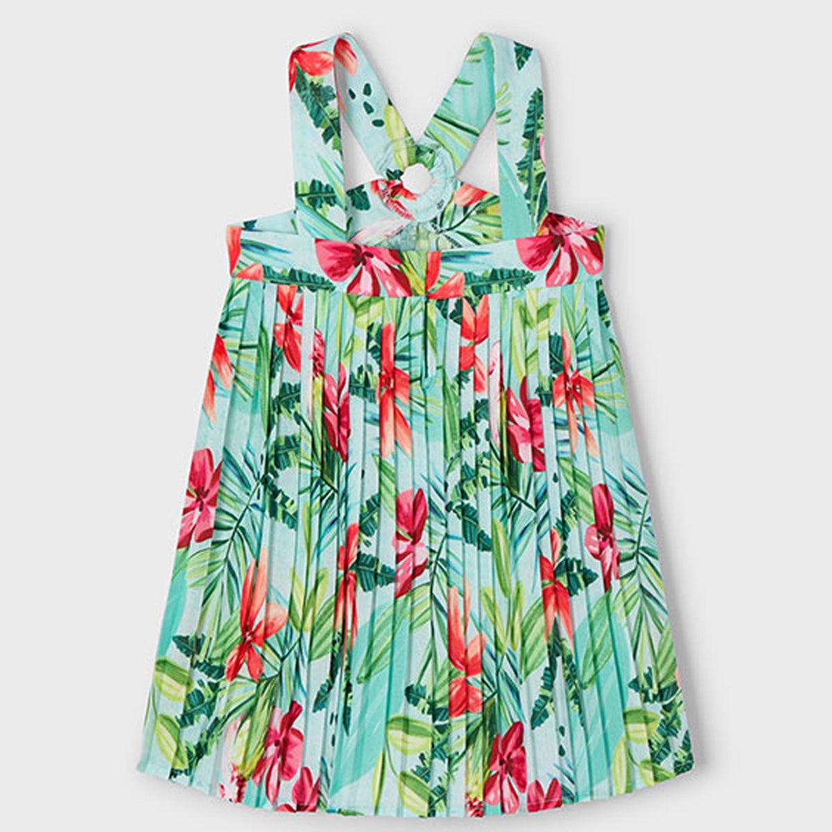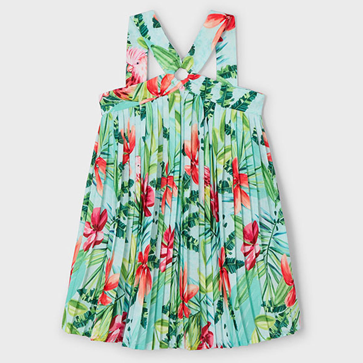Mayoral - Pleated Crepe Tropical Flower Print Dress