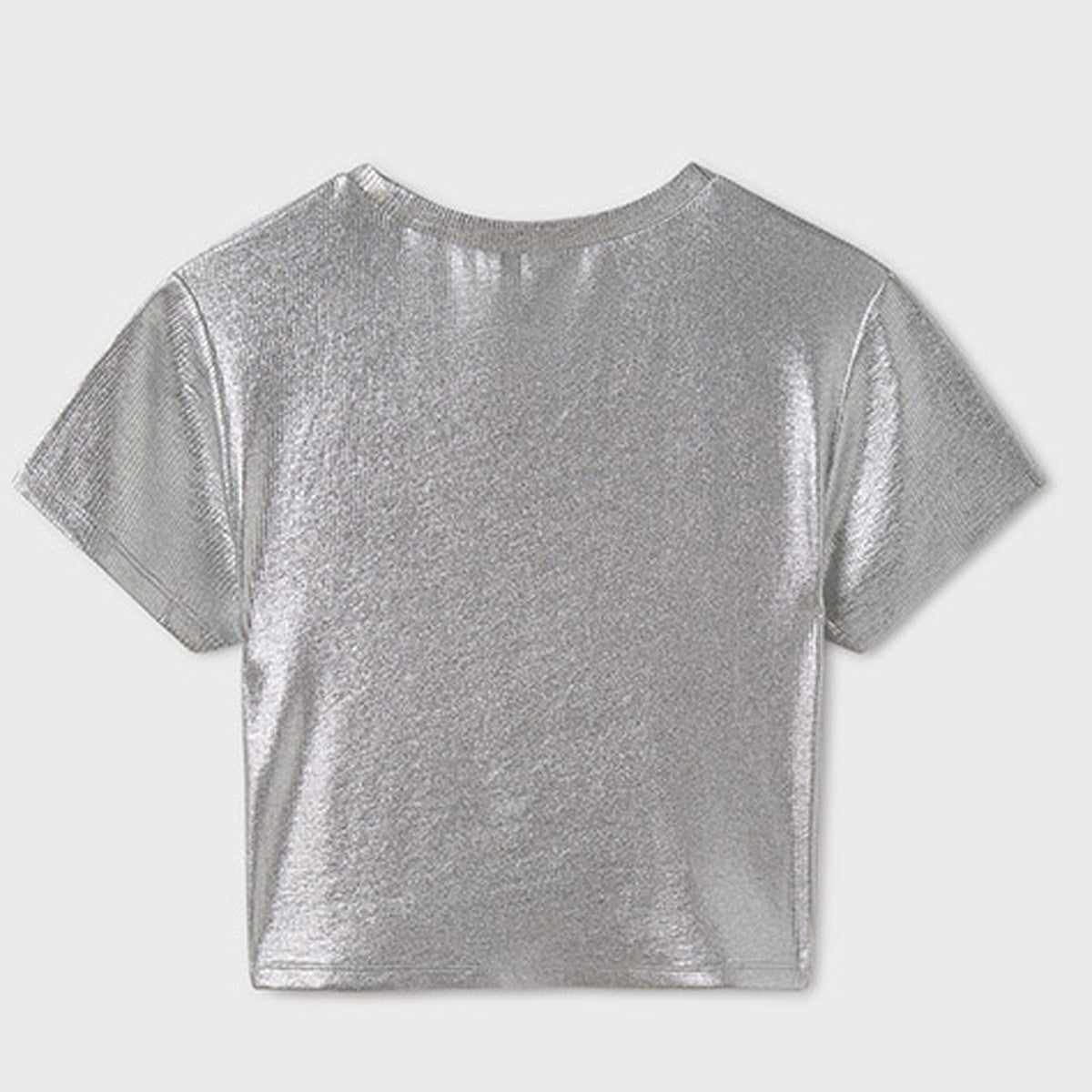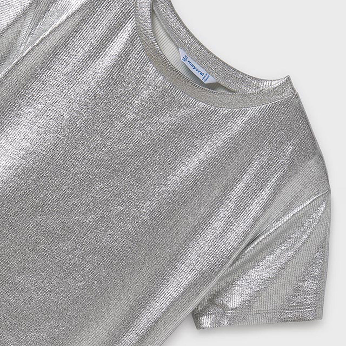 Mayoral - Metallic Silver Shimmer Ribbed S/S Top