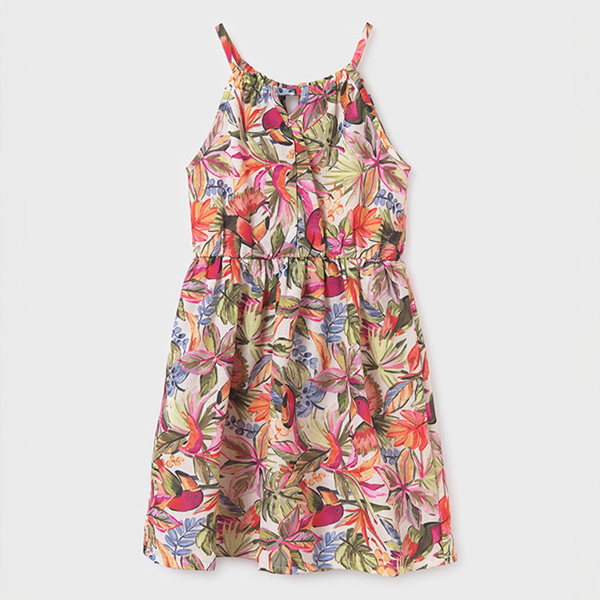 Mayoral - Tropical Floral Print Cinched Waist Sundress