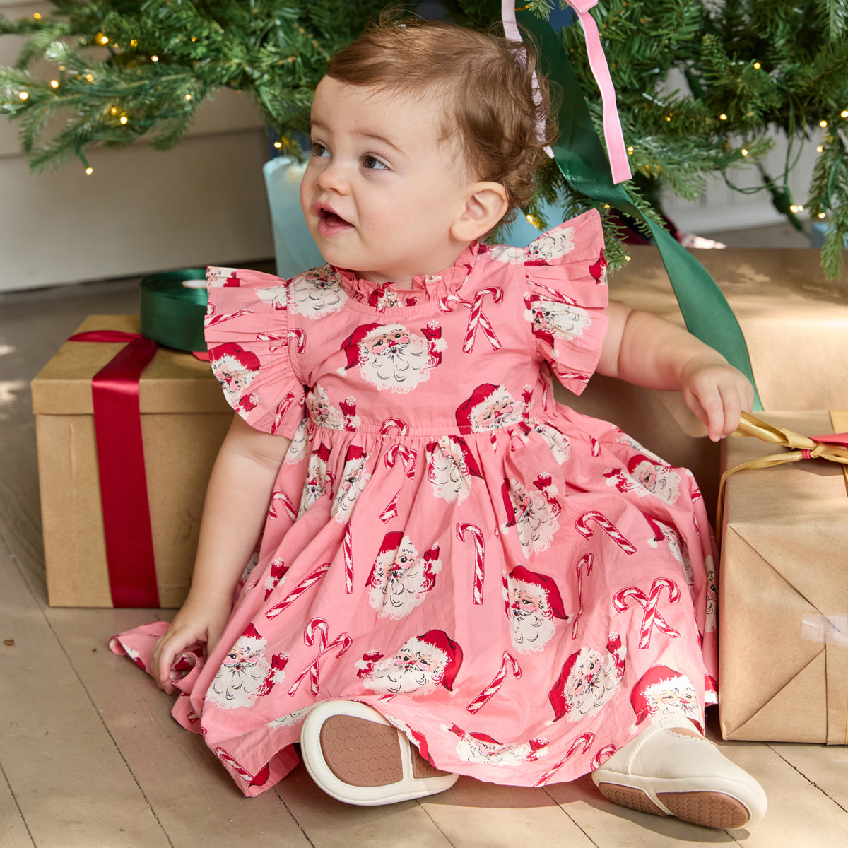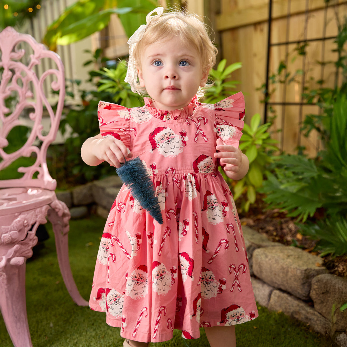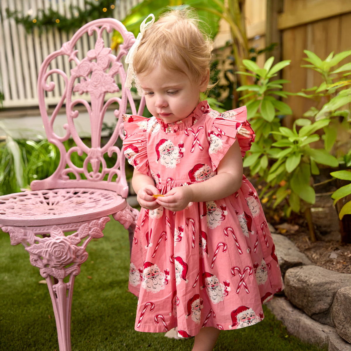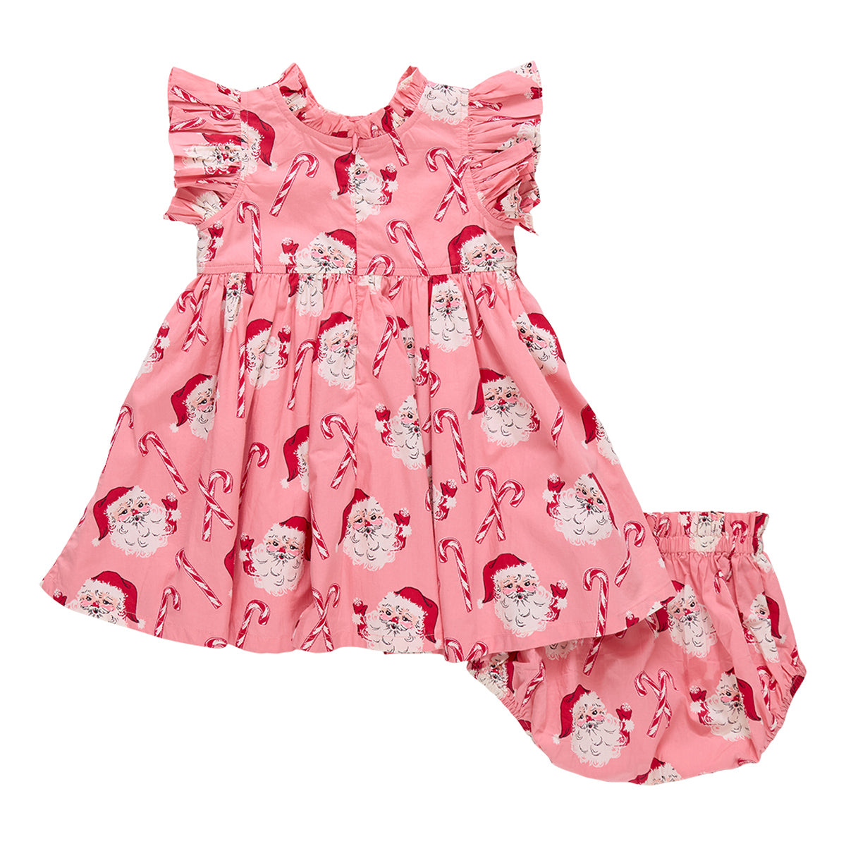 Pink Chicken - Jennifer 2pc Dress Set - Pink Candy Cane Santas