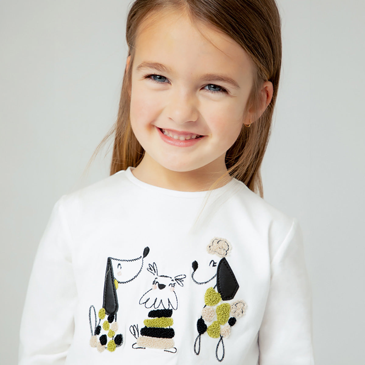 Mayoral - Glamour Pups Knit L/S Tee - Ivory/Citron