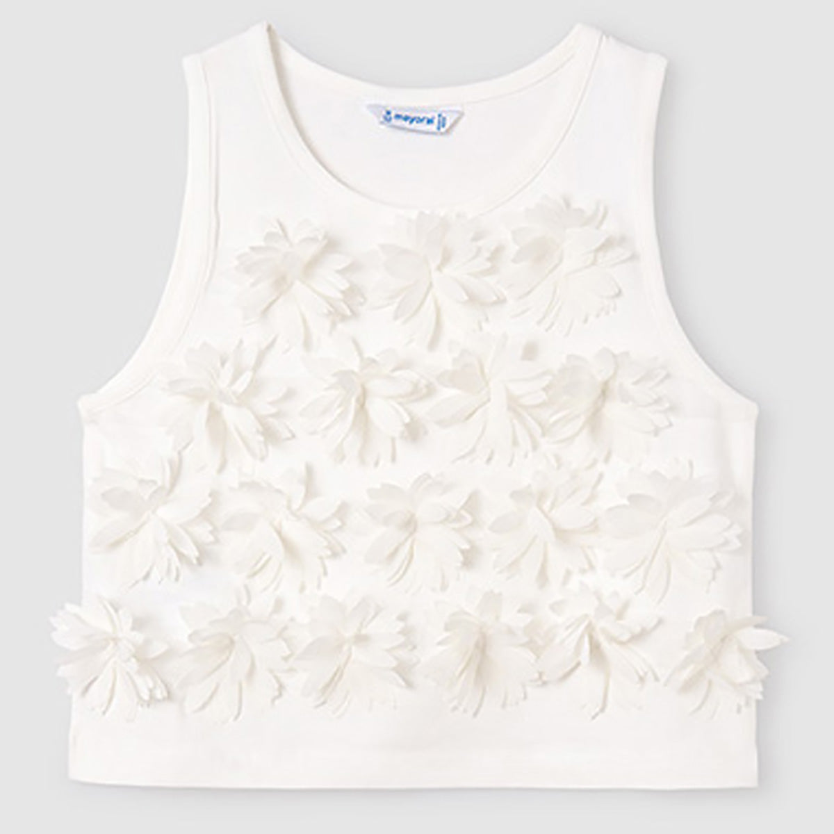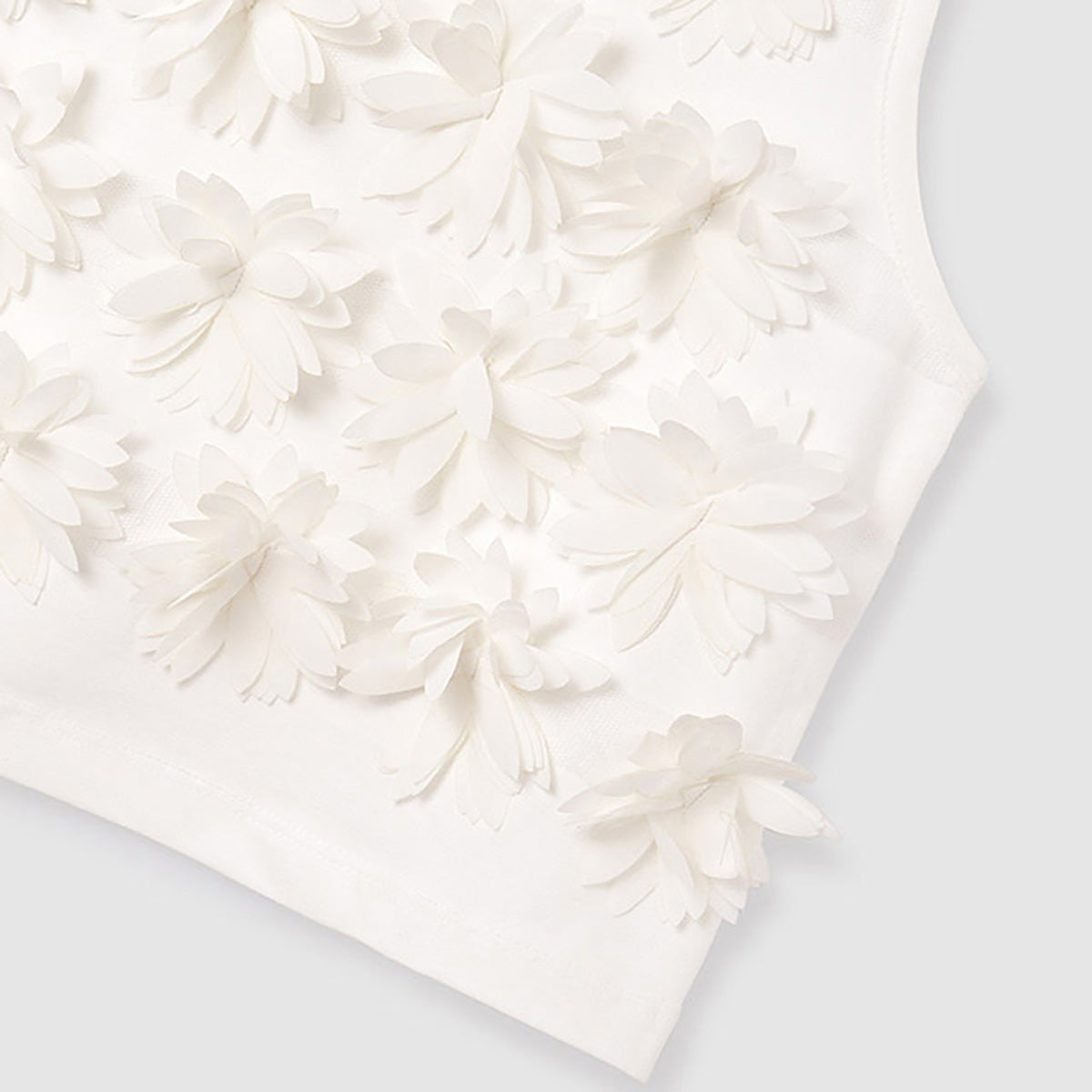 Mayoral - Flower Pop Embellished Sleeveless Top - White