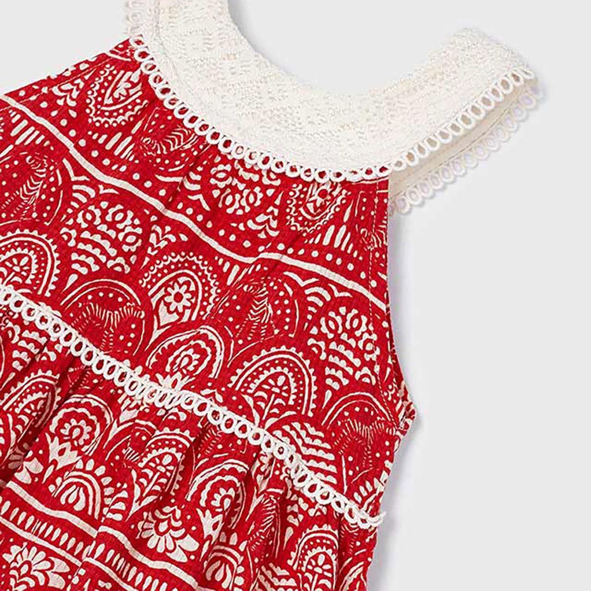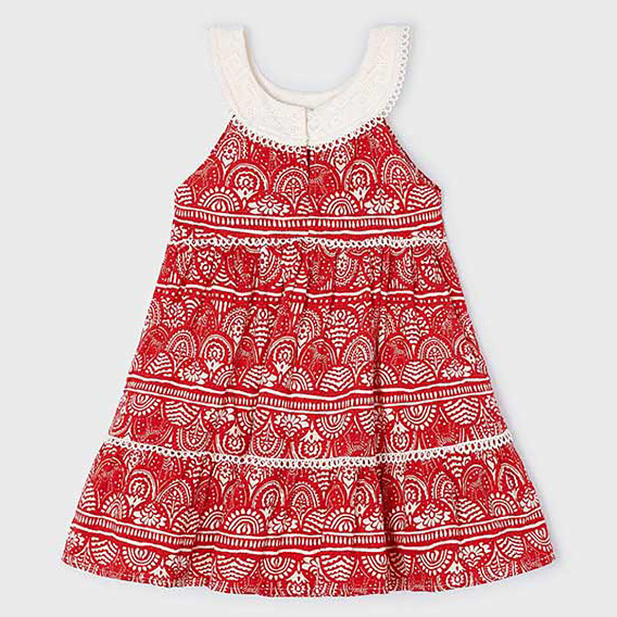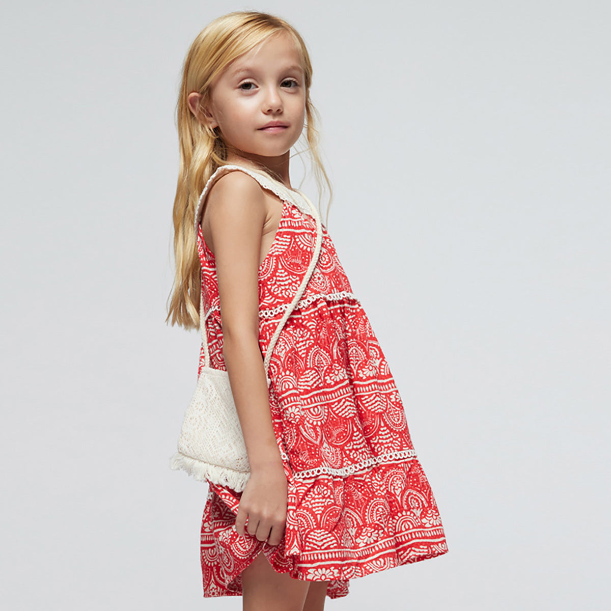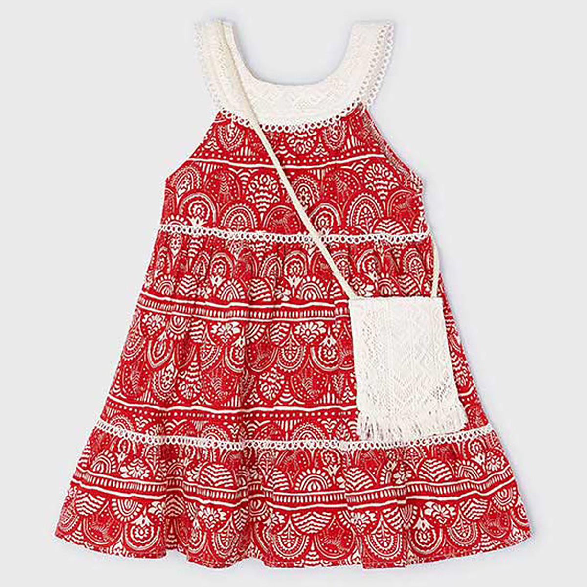 Mayoral - Geo Print 2pc Tiered Sundress & Fringe Purse Set - Red & Ivory