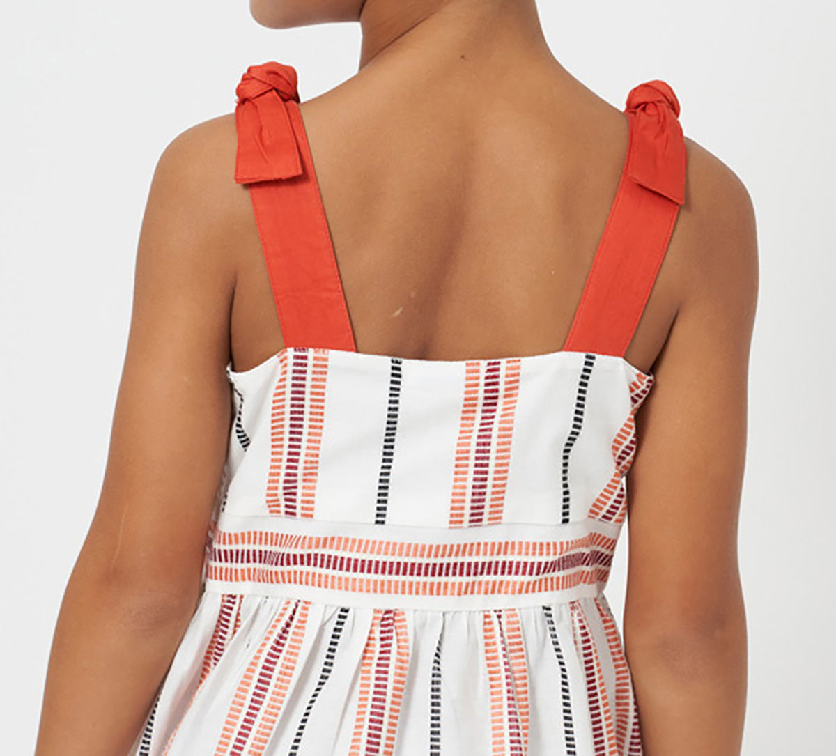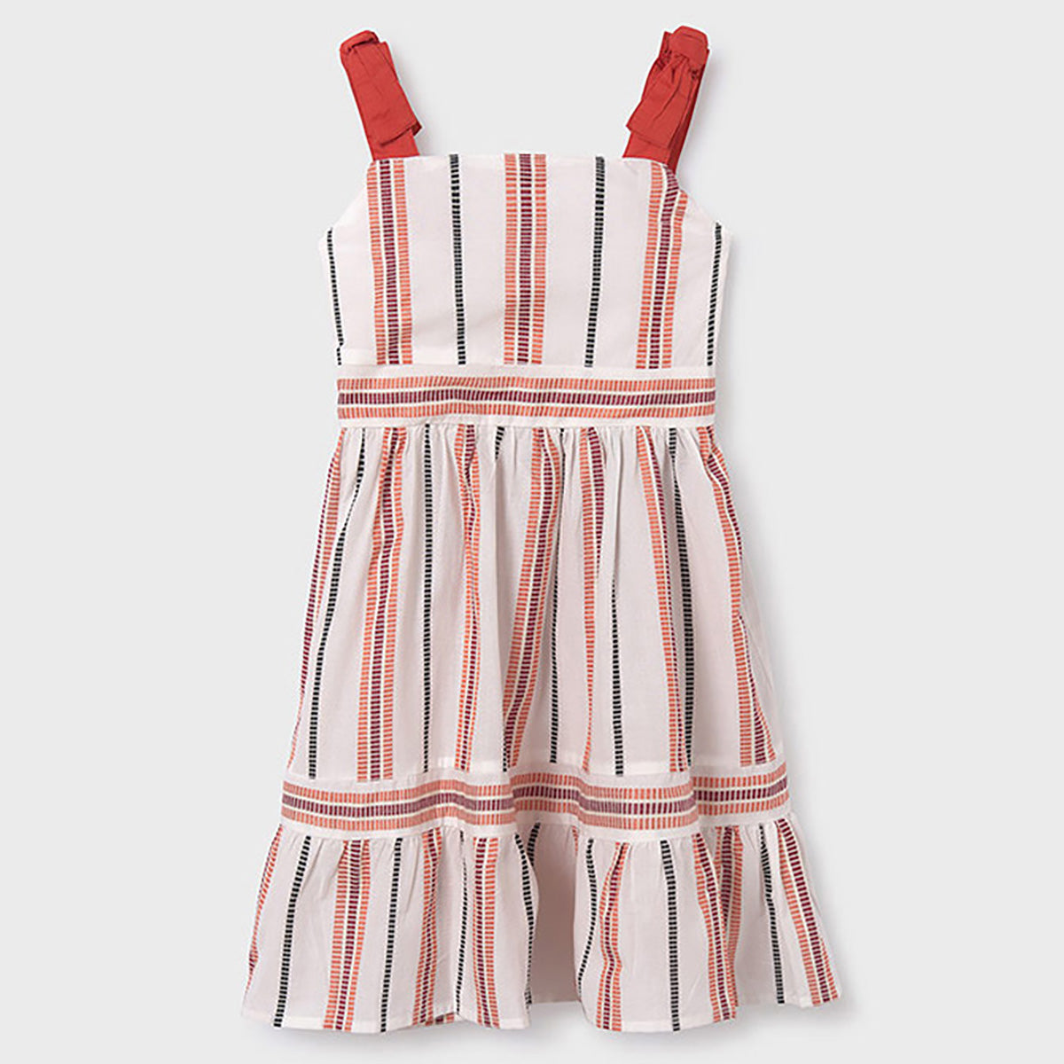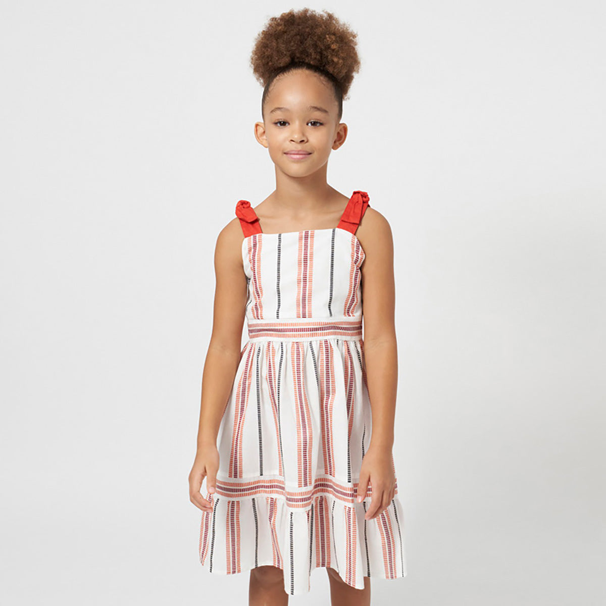 Mayoral - Multi Stripe Sundress w/Bow Shoulder Accents - Brick Red