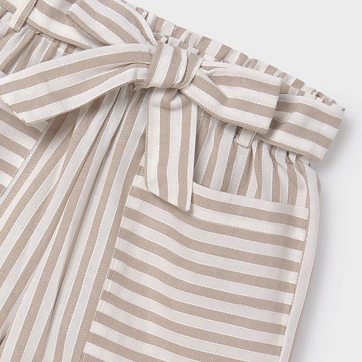 Mayoral - Stripe Shorts w/Front Pockets & Bow Sash - Tan/White