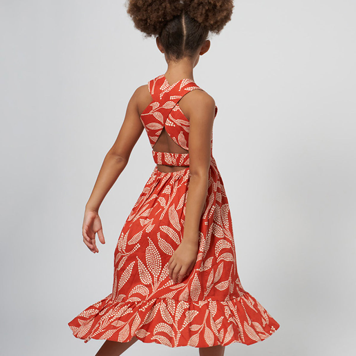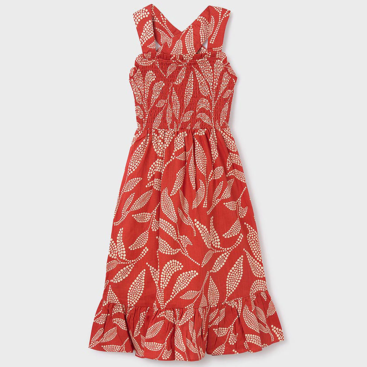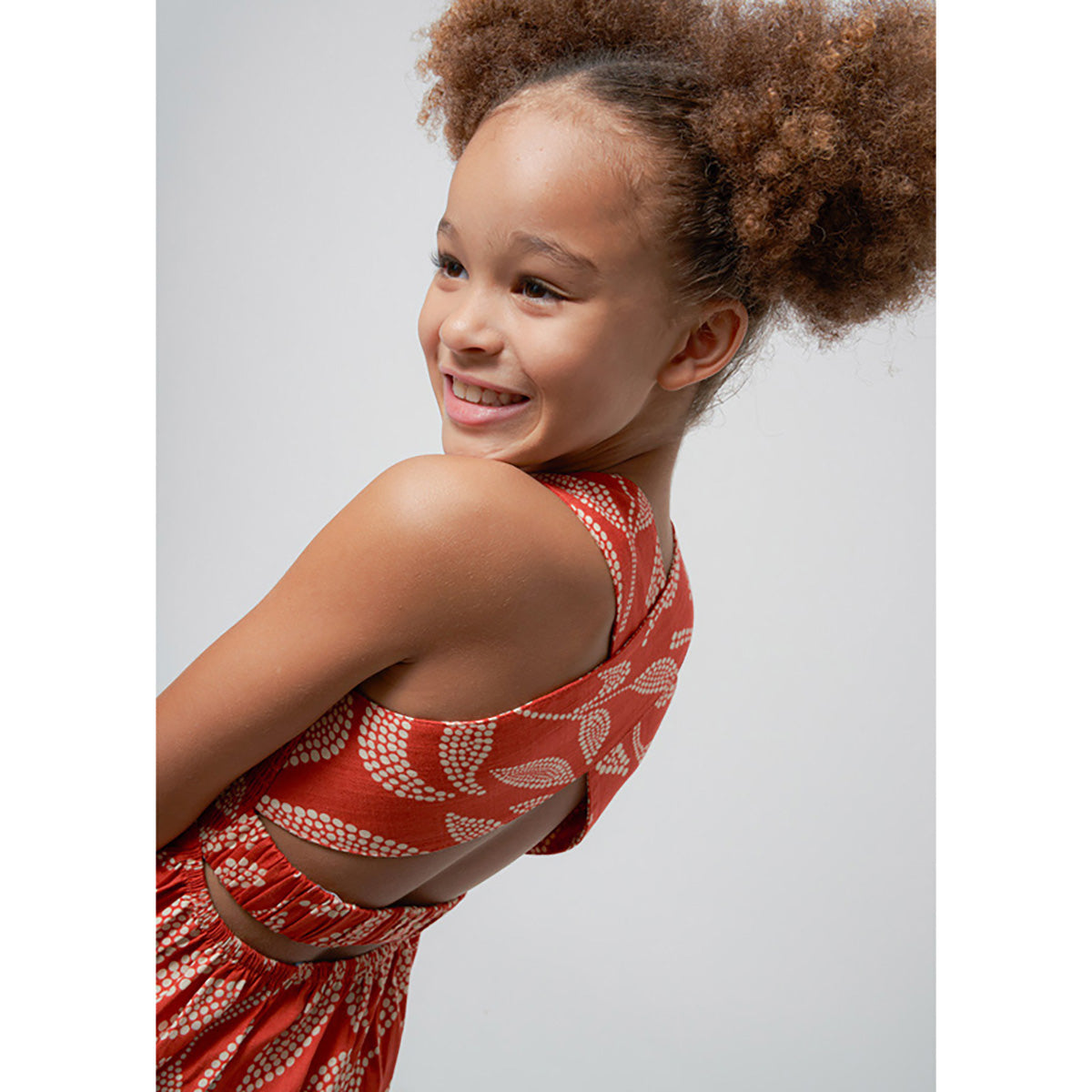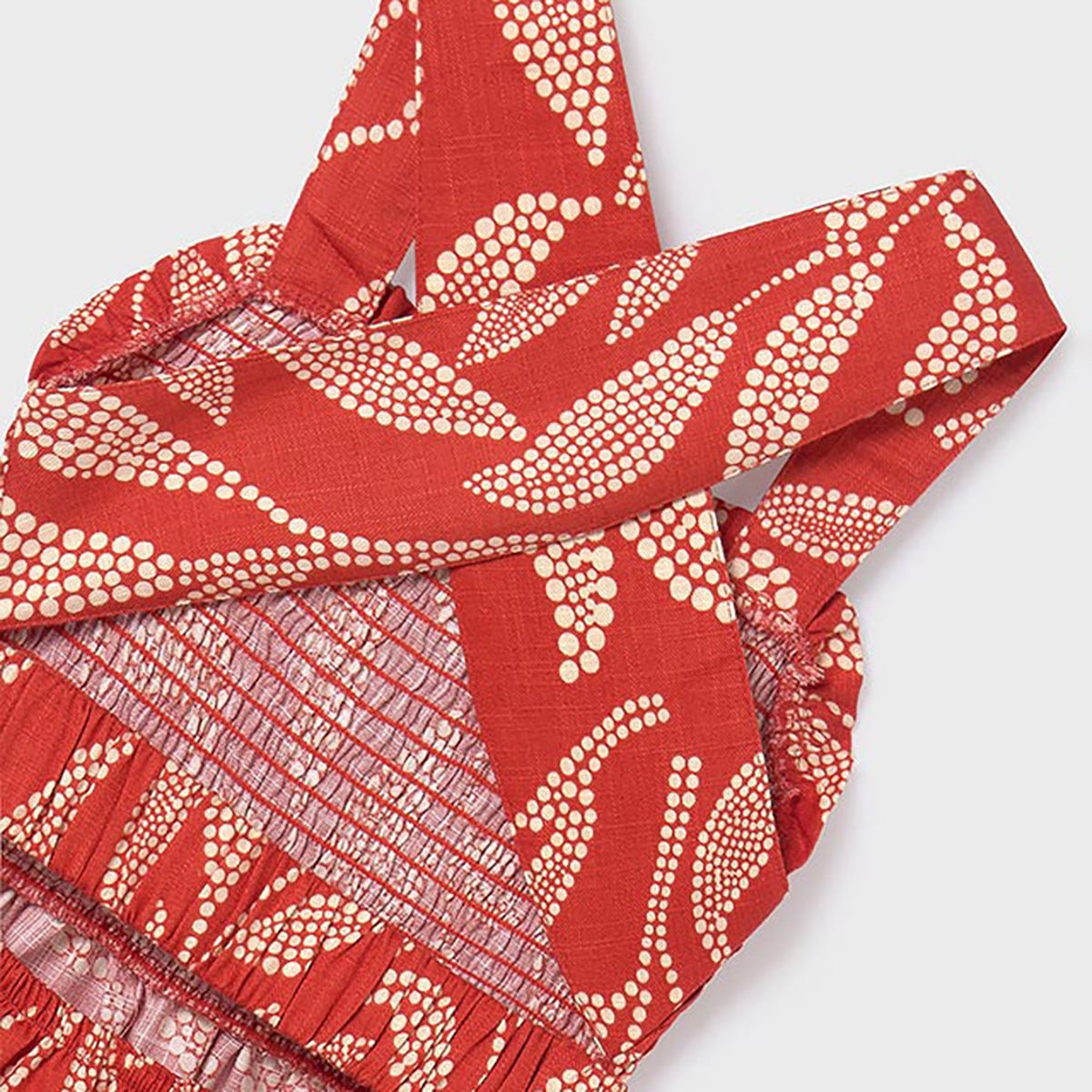 Mayoral - Tropical Print Smocked Sundress w/Criss-Cross Cut-Out Back - Brick Red