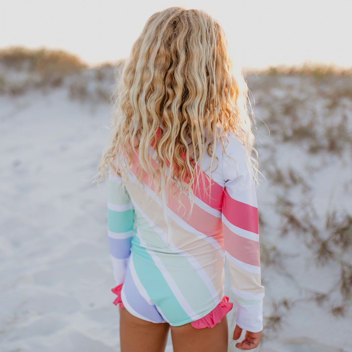 Oopsie Daisy - Pastel Rainbow 1pc L/S Back Zip Rashguard Swimsuit