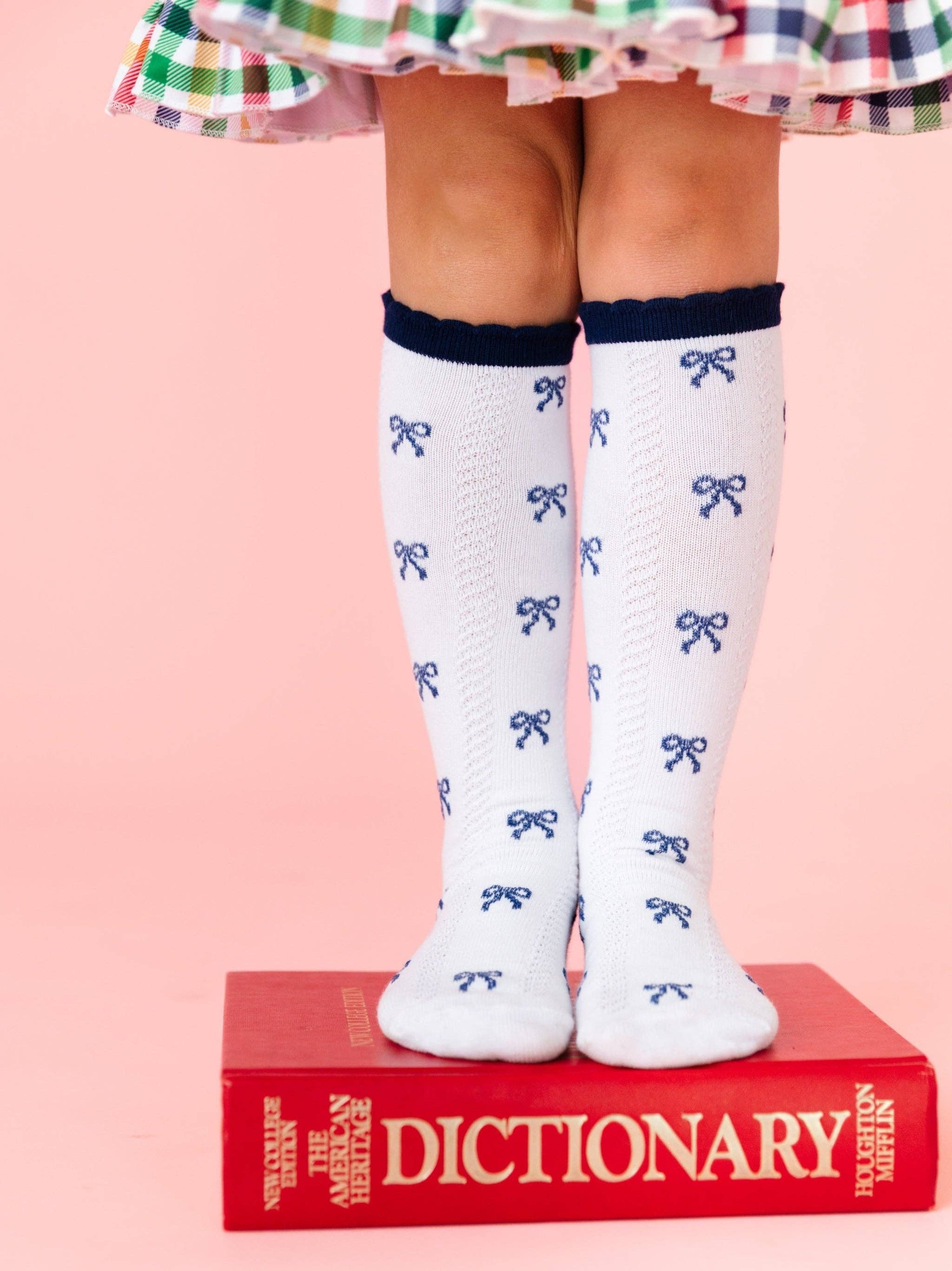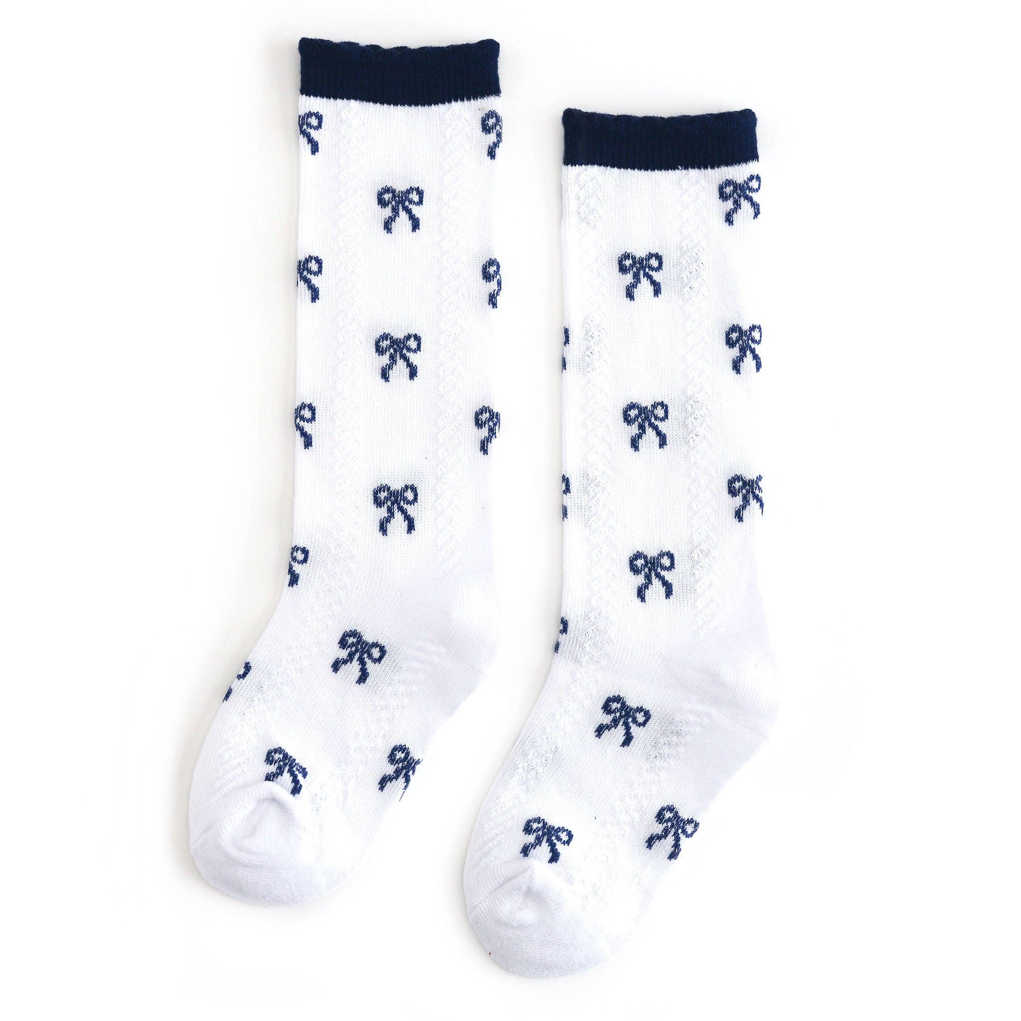 Little Stocking Co - Navy Bow Scalloped Knee Socks