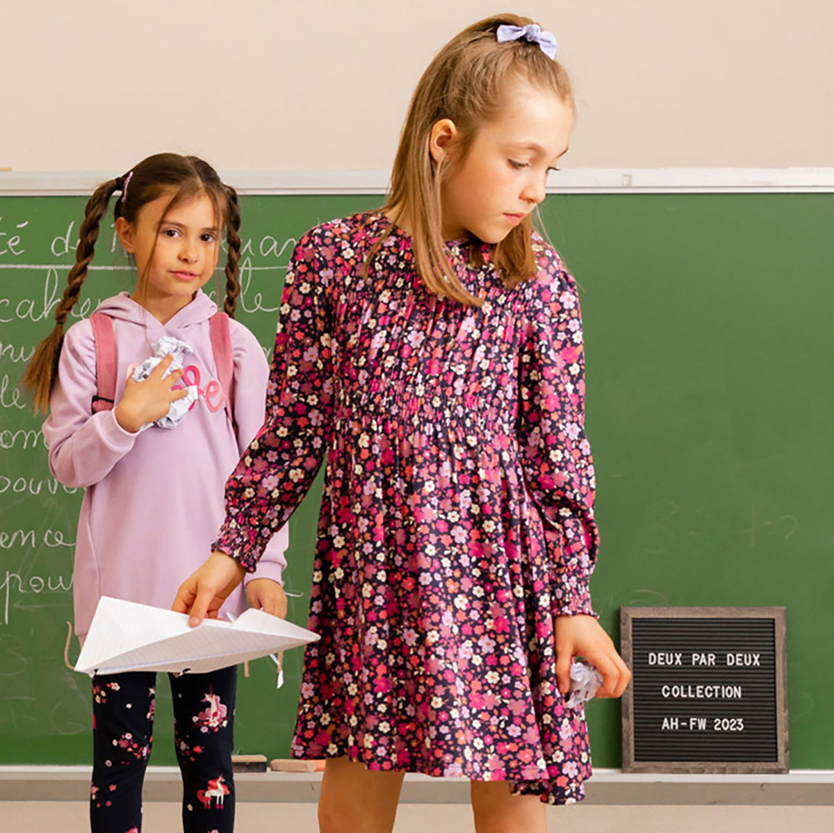 Deux Par Deux - In Love With Unicorns Liberty Flowers Printed Woven Dress - Navy/Multi