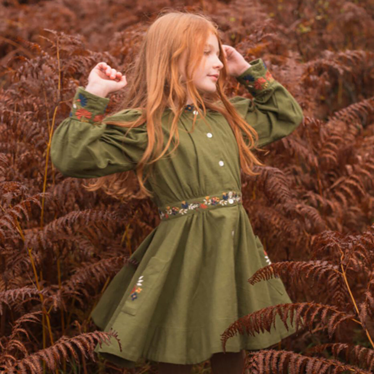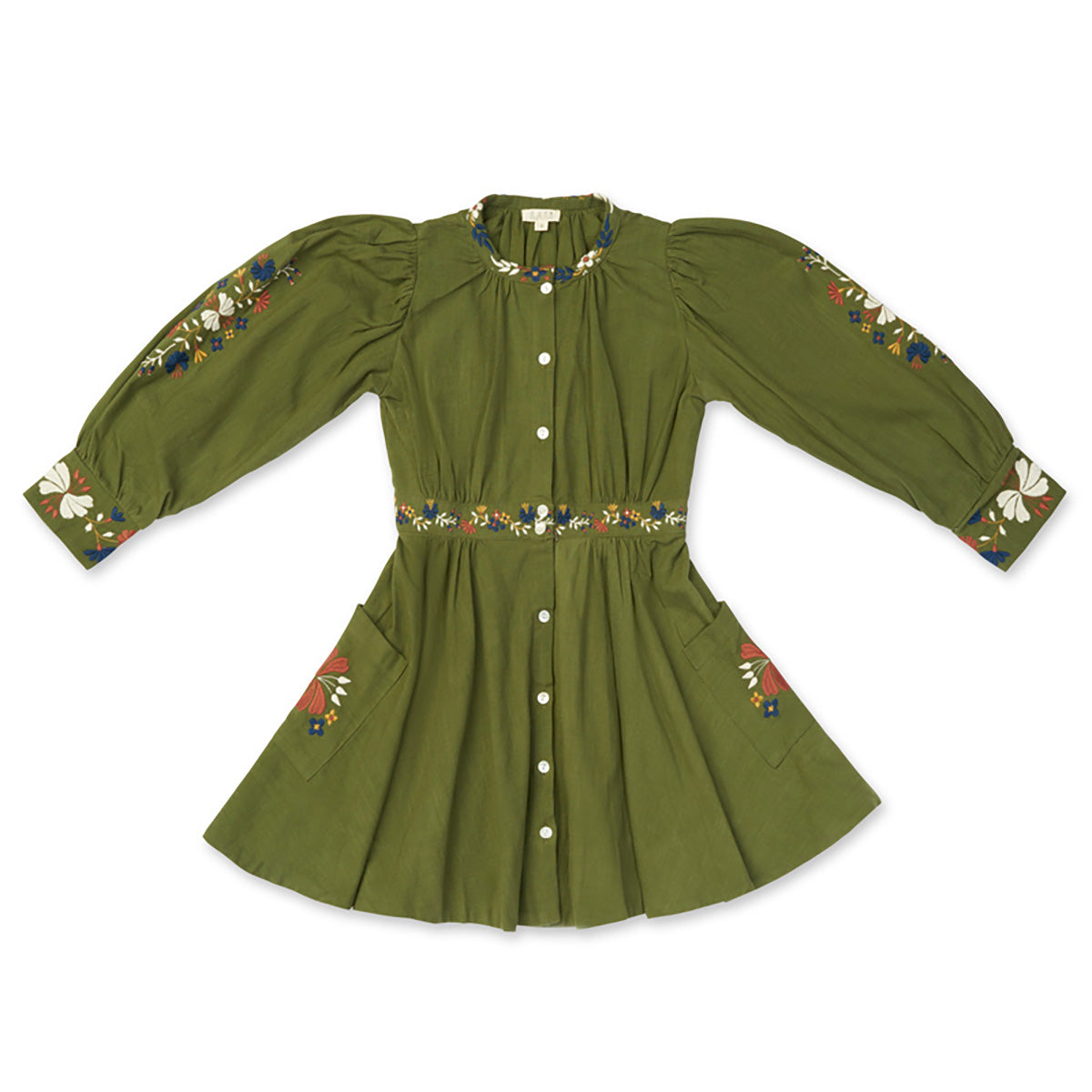 Lali Kids - Folklore Floral Embroidered Blair Dress - Cypress
