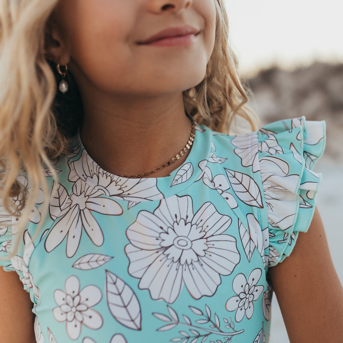 Oopsie Daisy - Mint Floral 1pc Open Back Ruffle Swimsuit