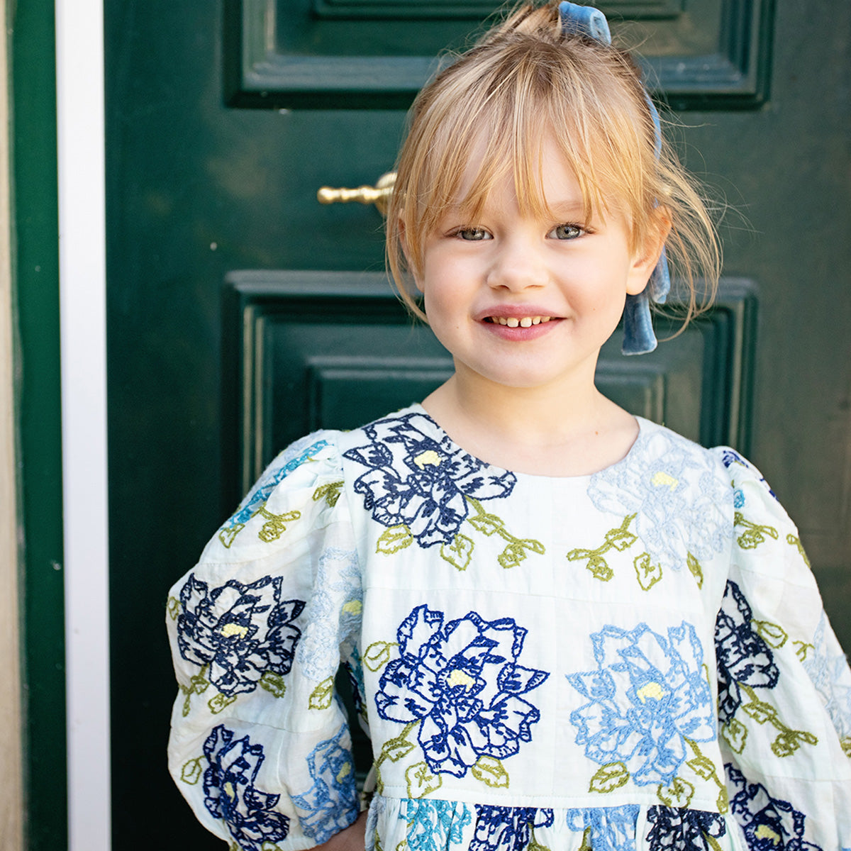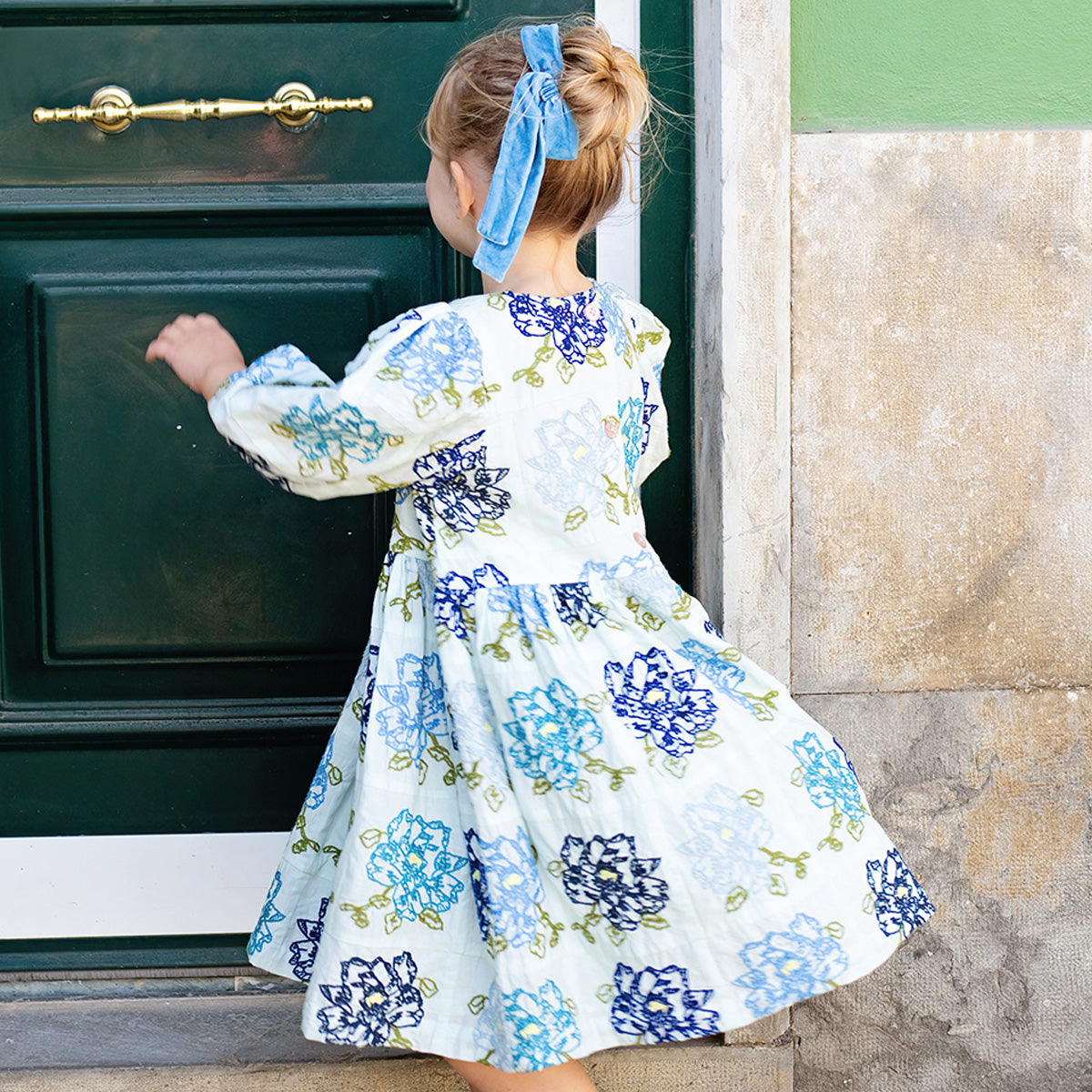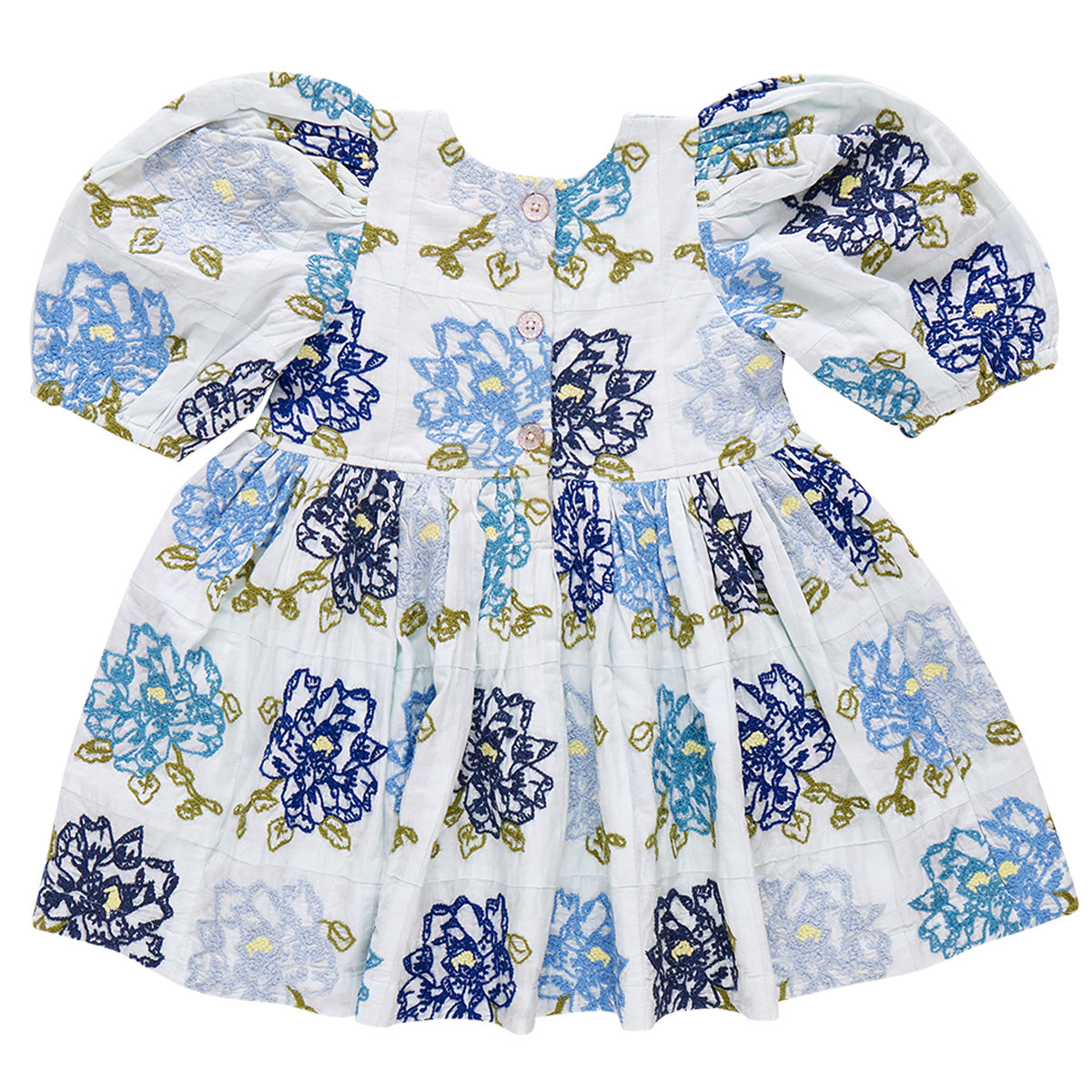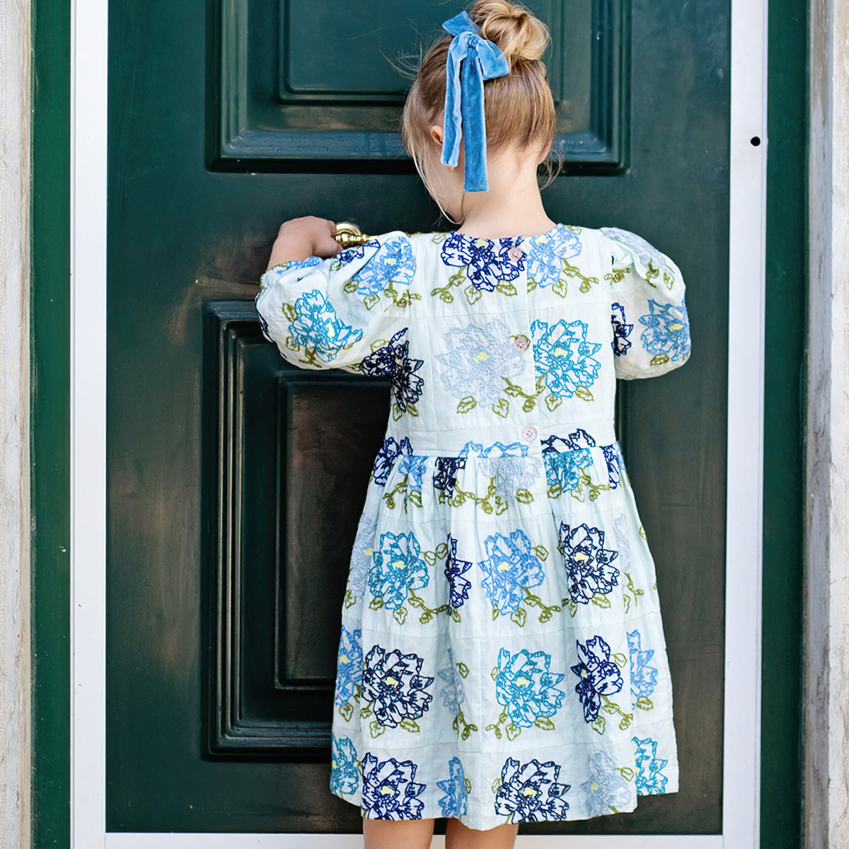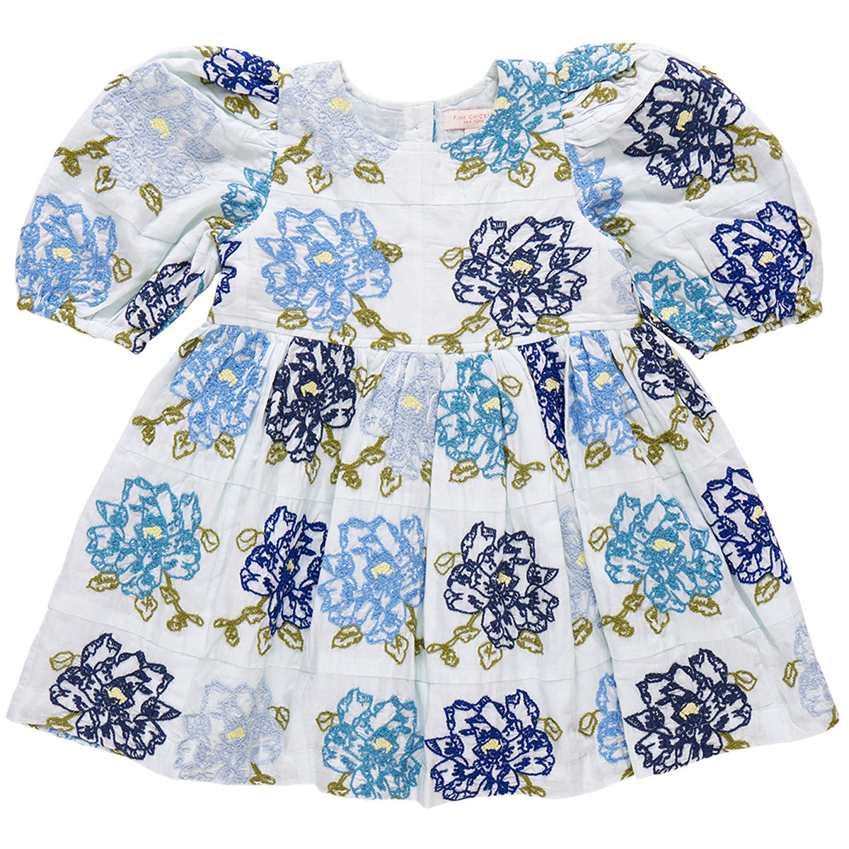 Pink Chicken - Brooke Dress - Blue Quilt Flower Embroidery