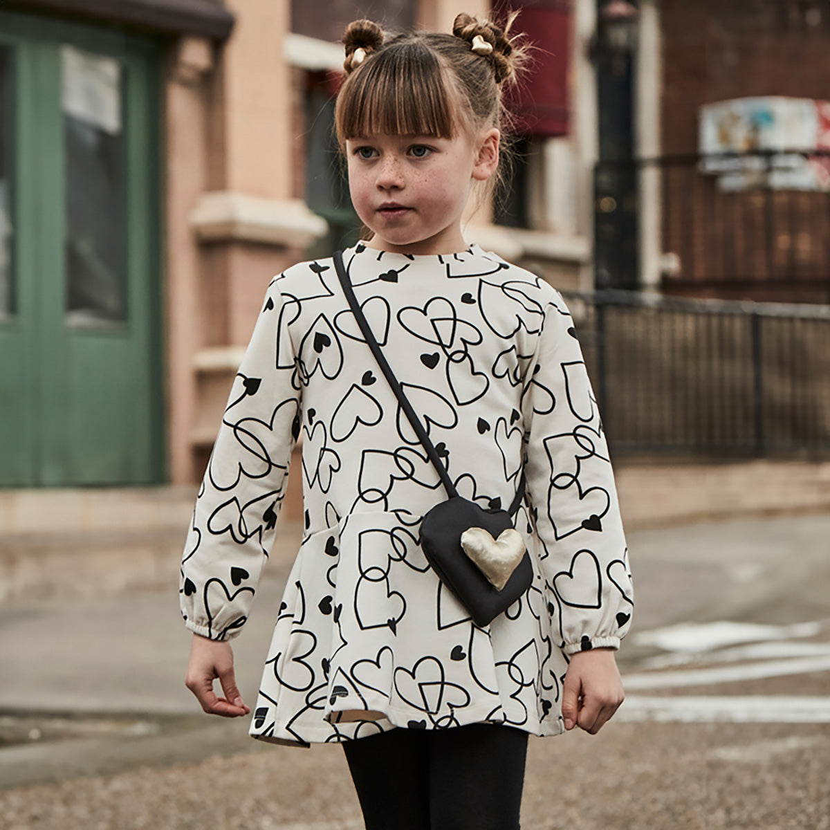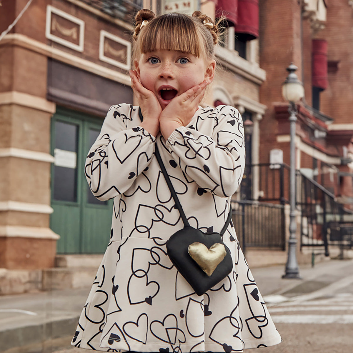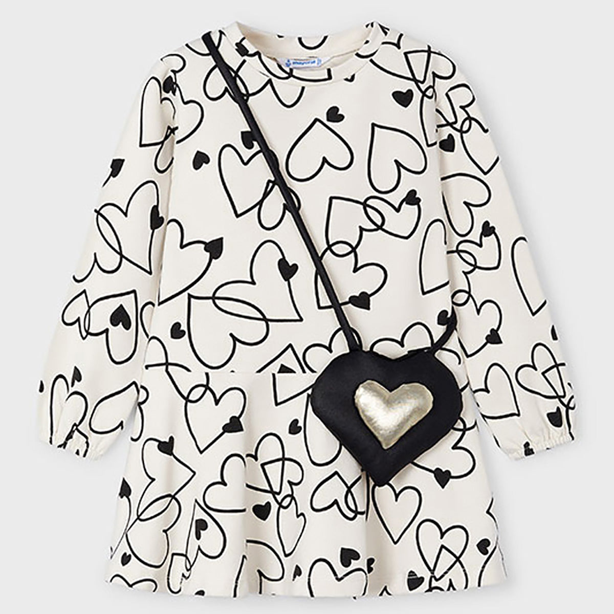 Mayoral - Hearts Galore Dress & Purse Set - Ivory/Black